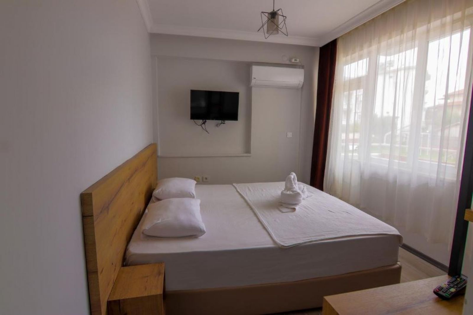Нашият хотел, който се намира на пешеходно разстояние от града на средиземноморската марка, центъра на Древна Сиде и известния пясъчен плаж със син флаг, предлага и допълнителни опции за настаняване само в стая, като например нощувка със закуска или полупансион.