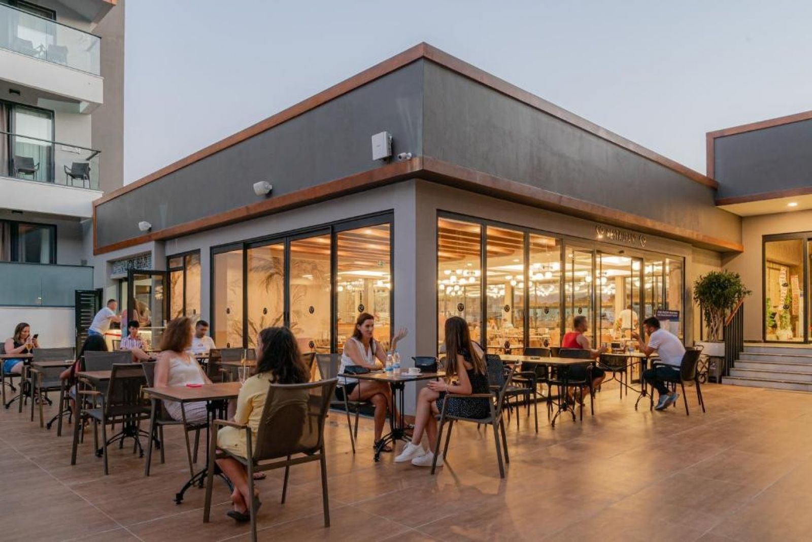 На територията на хотела: Основен ресторант, 3 бара, открит басейн, детски басейн, SPA център с турска баня, джакузи, солна стая, парна баня и сауна, фитнес център, фризьорски салон, билярд, футбол на маса, дартс, шах, табла, плажен волейбол, водни спортове (срещу допълнително заплащане), вечерни представления (3 пъти в седмицата).