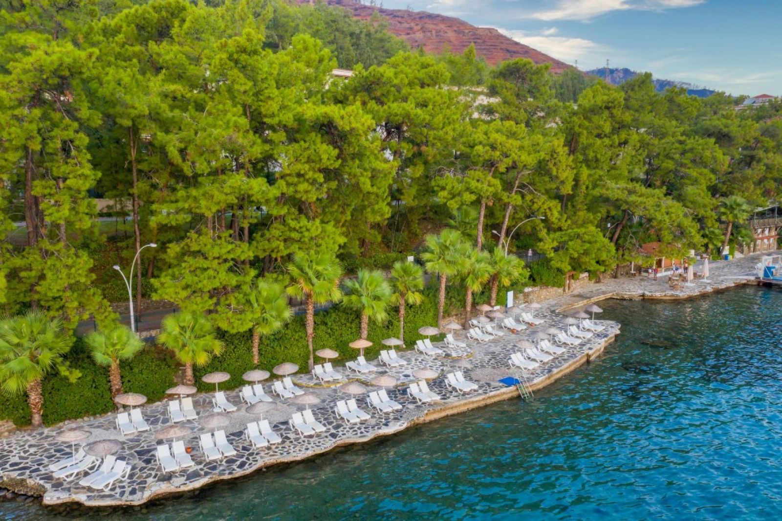 Разположение: Хотелът се намира на брега на Егейско море в естествена борова гора простиращ се върху територия с обща площ от 110000 м2. Разположен е на 130 км от летище Милас, на 90 км от летище Даламан, на 5 км. от центъра на Мармарис, на 3 км от селището Ичмелер. Построен е през 1988 г., последно реновиран през 2013 г.