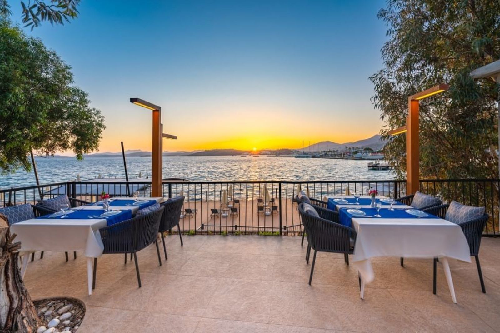 Разположение: Хотелът се намира на 35 км от летище Милас (Бодрум), на 1 км от центъра и търговската зона на Бодрум. Разположен е на първа линия от брега на морето. Разполага с красива територия, зелени градини върху обща площ от 32000 м².