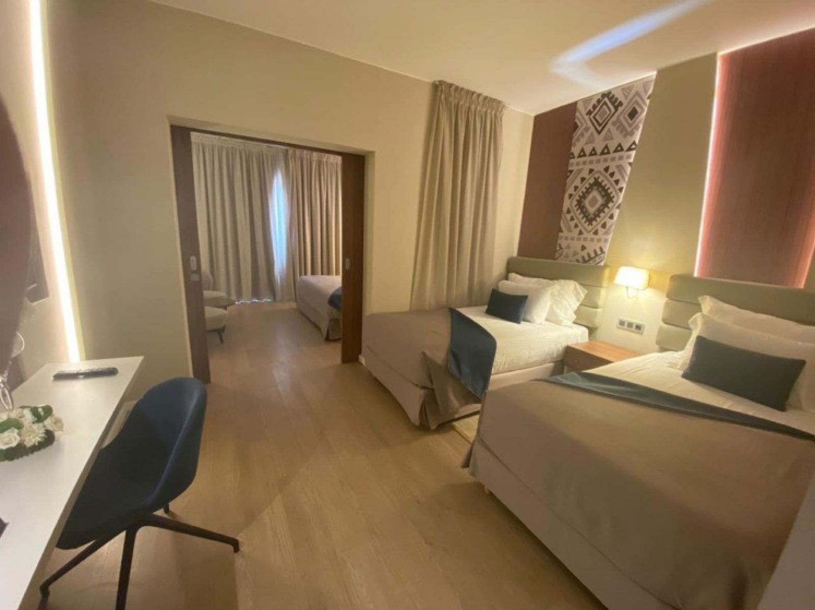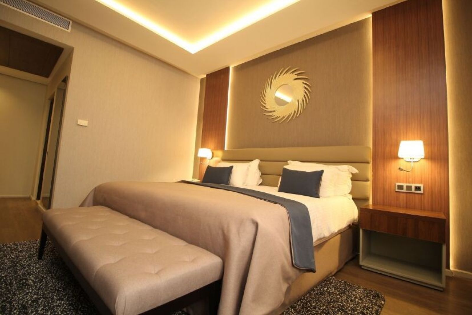 В стаите: Стаи и суитс- предлагат луксозно обзавеждане, между 39 кв.м. и 60кв.м площ, с висока гама материали в баните и Hendiya продукти , балкон или тераса, с хол и/ или трапезария, сателитна телевизия, 24 часа рум сървиз и минибар, халат и чехли.