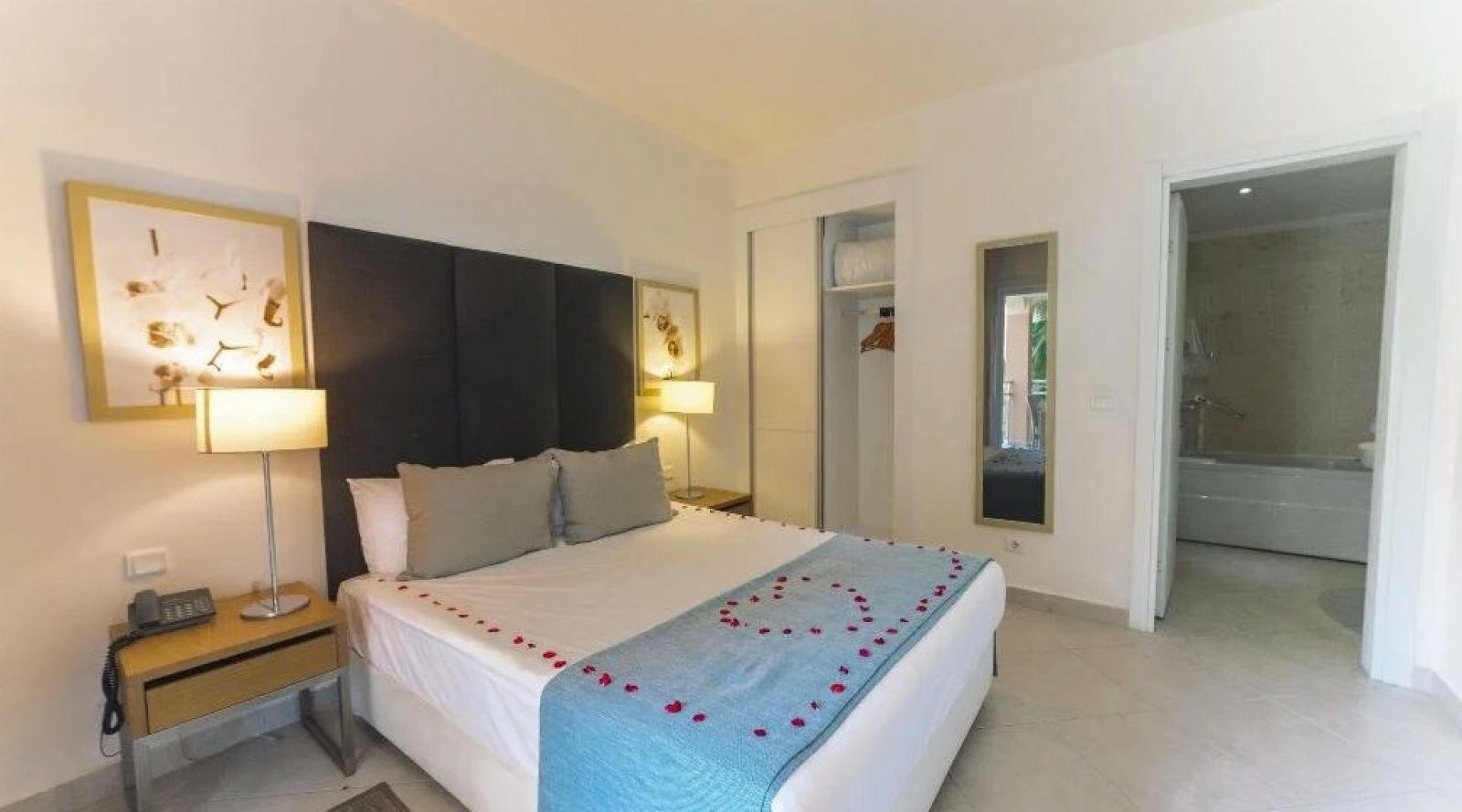 Плаж: Собствен, пясъчен на 8 км от хотела с осигурен безплатен шатъл, чадъри, шезлонги, матраци на плажа и при басейните – безплатно. Бар на плажа.