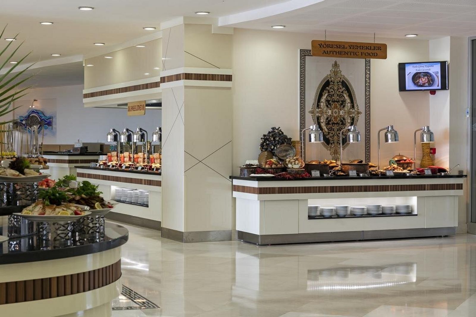 Основен ресторант, 4 а - ла - карт ресторанта (с предварителна резервация; минимум 5 нощувки; турски, морски, китайски и италиански), 8 бара, дискотека, сладкарница, 3 открити и 1 закрит басейн, водни пързалки, аквапарк, амфитеатър, магазини, СПА център, конферентни зали, паркинг, библиотека, кино, анимация.