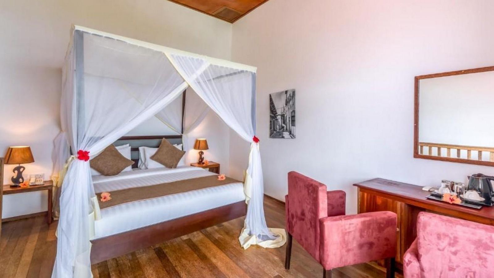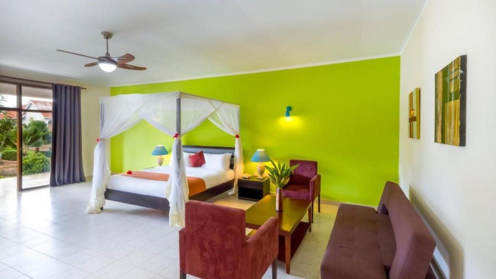 Всяка стая в хотела е климатизирана и снабдена с мрежа против комари. Оборудвана е с кът за сядане, телевизор с плосък екран със сателитни канали. Стаите са със собствена баня с душ. Някои от тях имат балкон и гледка към морето.