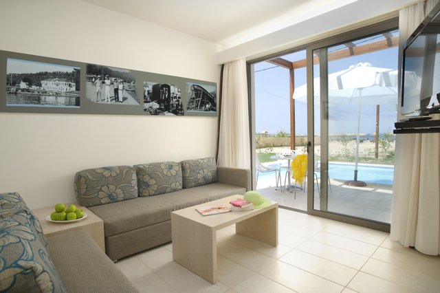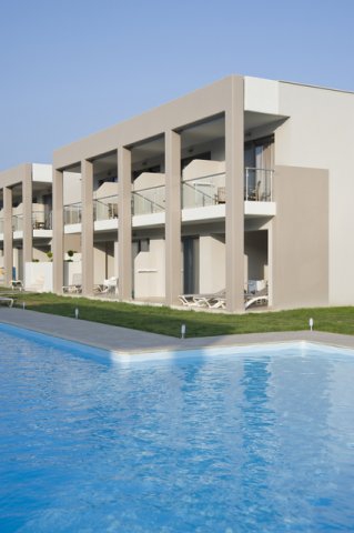 Нов хотел, построен 2010 г., разположен директно на спокойния и просторен пясъчен плаж. До центъра на градчето Skala Prinos - 800 метра, столицата на острова е на 12 км. Хотелът представлява модерен и елегантен новопостроен комплекс, разположен в едноетажни и двуетажни красиви постройки.