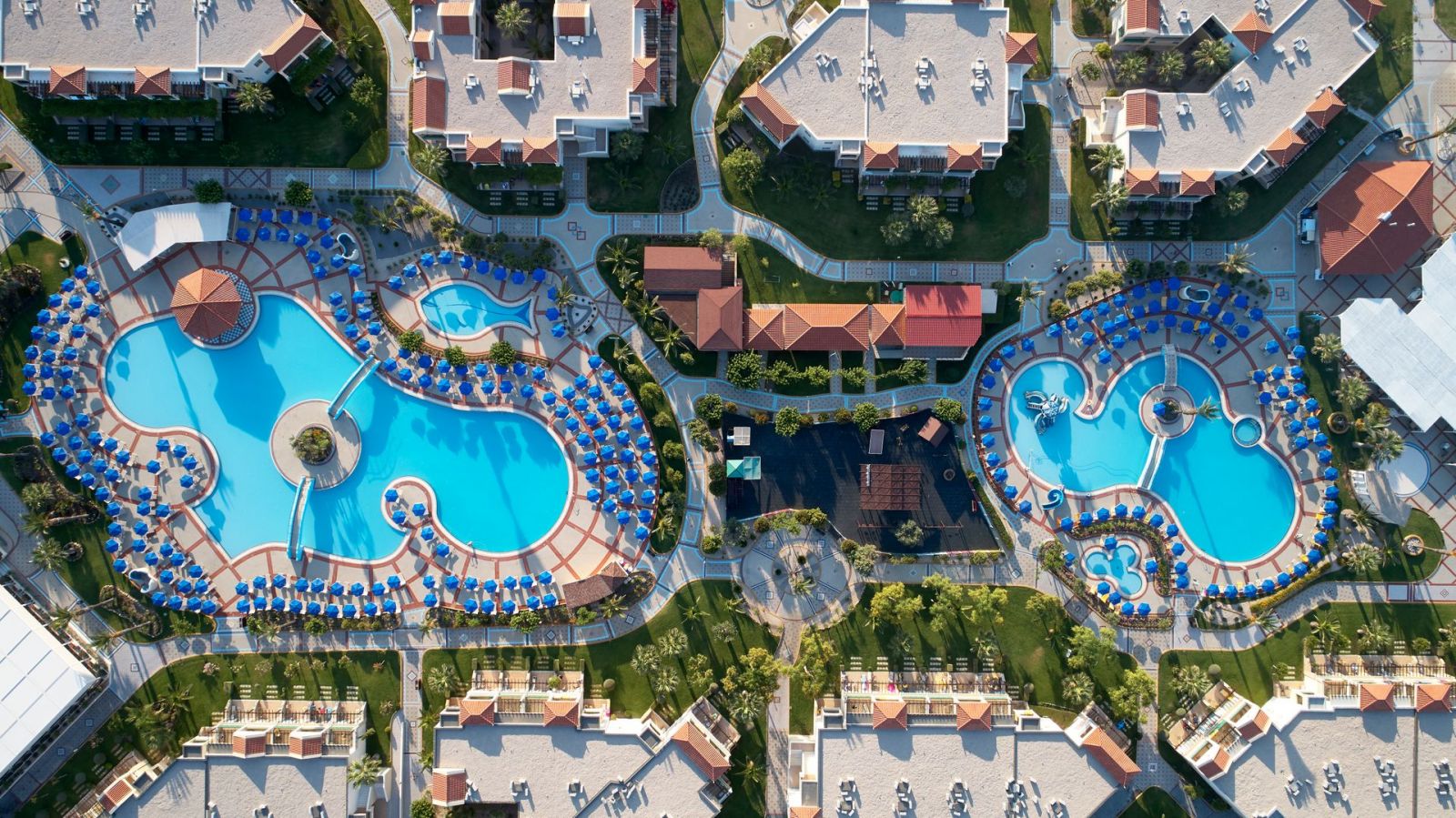 - Шезлонги и чадъри на басейна