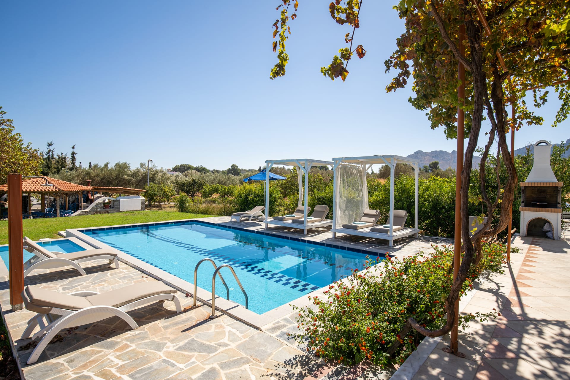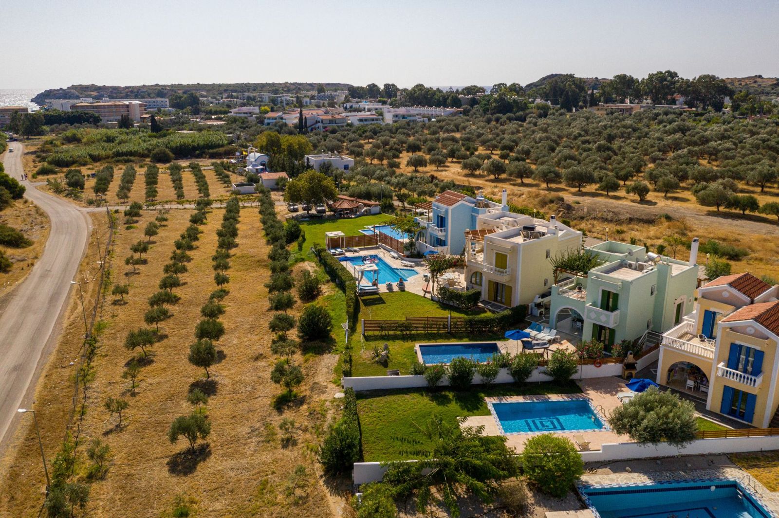 12 ISLANDS е луксозен вилен комплекс с 12 вили (с имена и архитектурни характеристики, вдъхновени от комплекса от 12 острова, на който Родос е столица) с s-частен басейн, изглед към морето и провинцията, на минути от плажа, ресторанти, голф и удобства . Идеален за семейни и групови почивки. Всички жилищни и спални помещения също споделят това, което несъмнено е основната характеристика за продажба и това са гледките! Повишената позиция предлага панорамна гледка към Егейско море и живописния пейзаж на Родос.