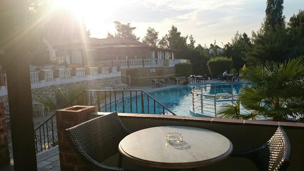 The Hotel Kassandra Bay is situated downhill between the village of Kriopigi and the local beach. Surrounded by pinetrees and olivetrees, away from the mainroad, therefore very quiet location. Our rooms are cozy with a very nice seaview from most of the rooms.  Enjoy a cold drink from our poolside bar which is open all day long, when sunbading arround our nice swimmingpool. The village of Kriopigi has to offer shops, bars, restaurant, the church and a amphitheatre. Kriopigi is only 5km away from Kallithea, a very busy village with a lot of shops, bars and nightclubs.