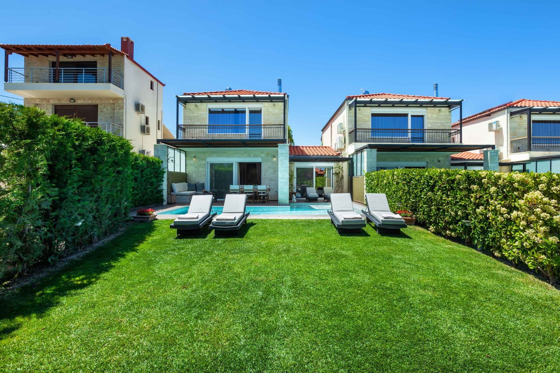 Welcome to our enchanting complex of 11 luxurious villas, perched atop a hill overlooking the breathtaking bay of Toroneos. Get ready to immerse yourself in the ultimate summer vacation experience, where relaxation and rejuvenation take center stage.