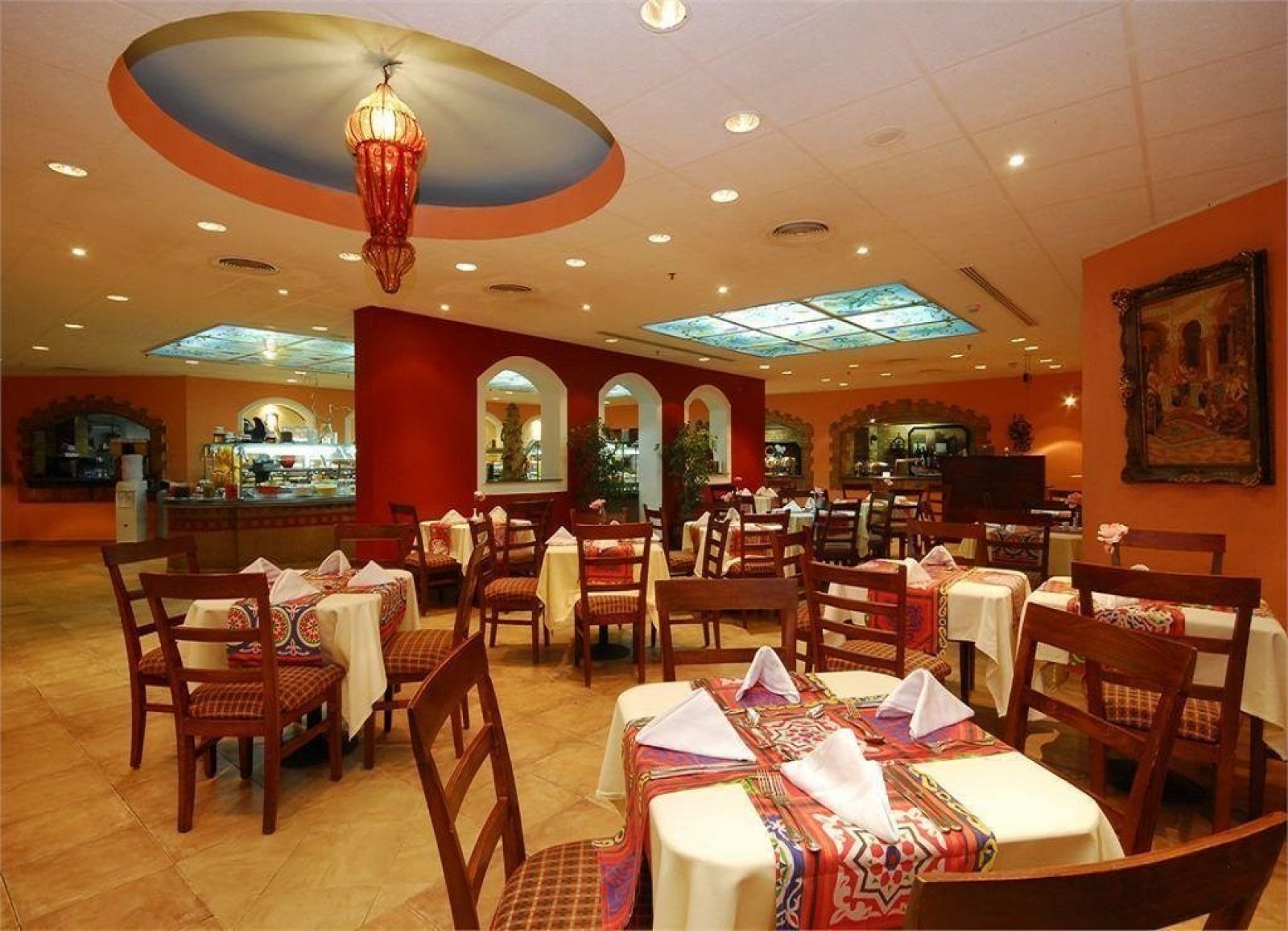 Основен ресторант, 3 а-ла-карт ресторанта (италиански, ориенталски, морски), 5 бара, 4 открити басейна, 2 водни пързалки, амфитеатър, 2 тенис корта (оборудване и осветление - платено), банкомат, Wi-Fi (на лоби бара).