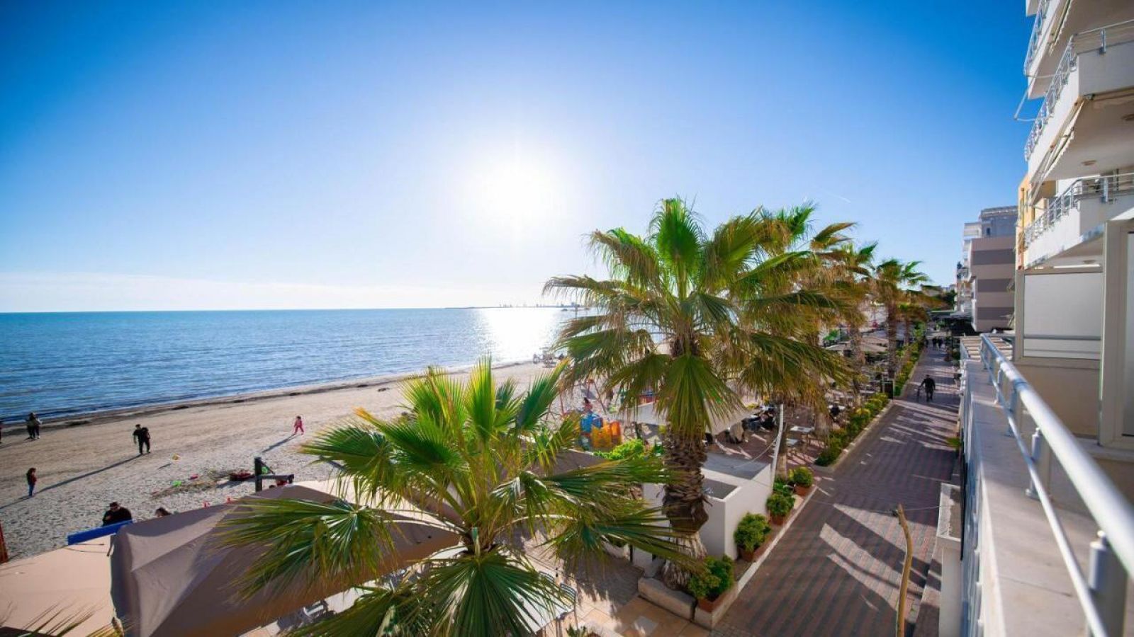 - Частен пясъчен плаж с шезлонги и чадъри