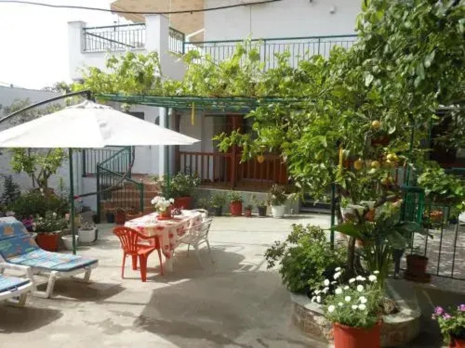 - Шезлонги и чадъри на басейна