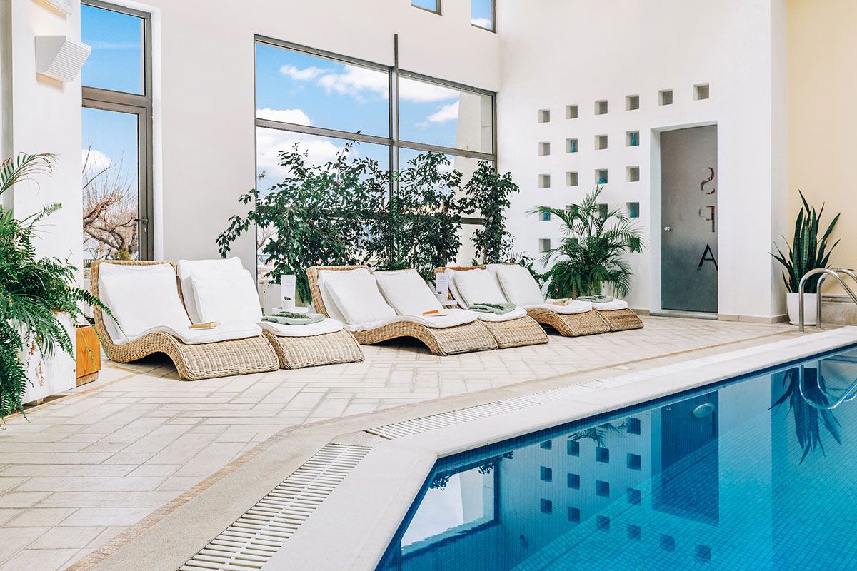 - Вътрешен плувен басейн с хидромасаж (100 см дълбочина)