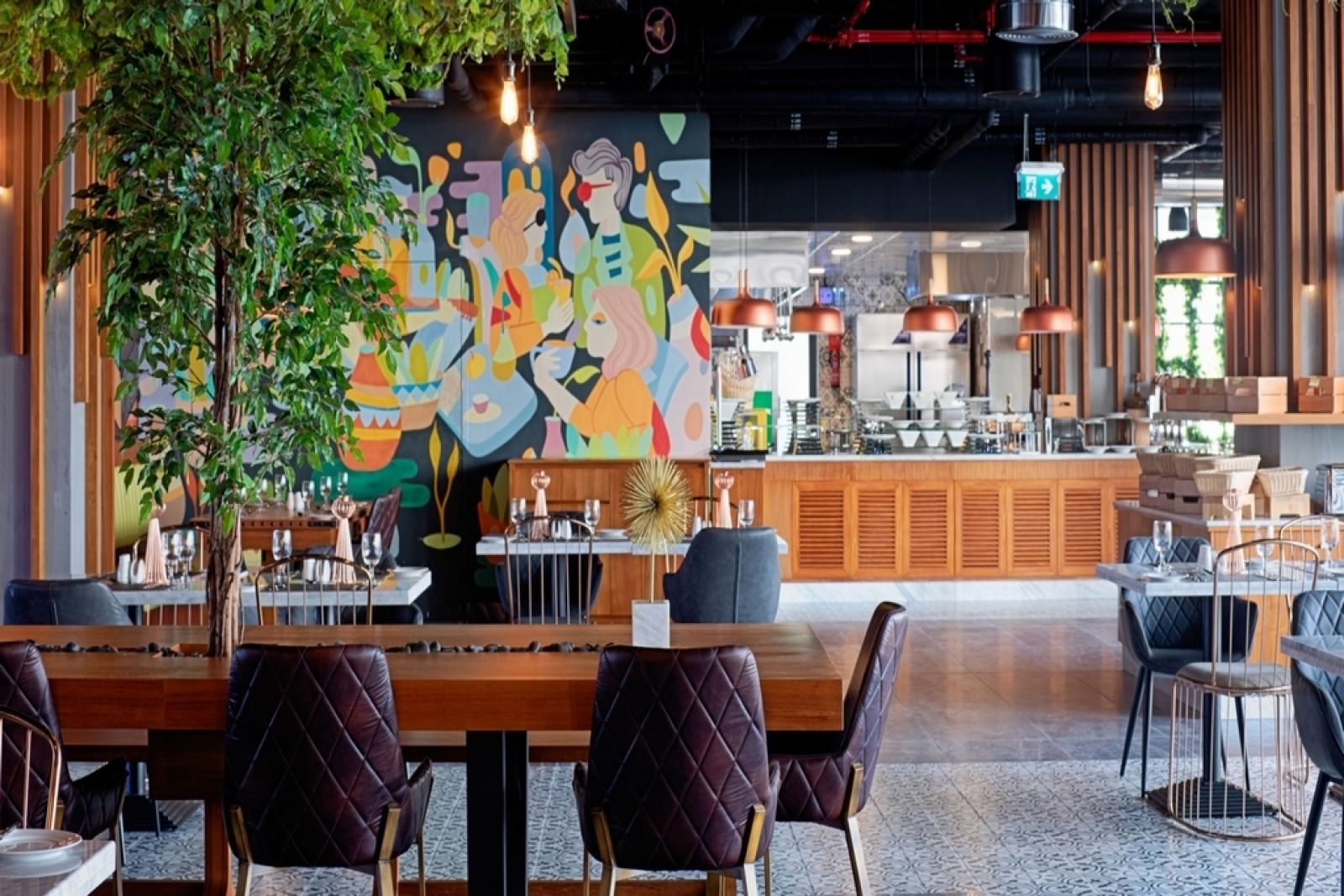 - Ресторант Waves: Основният ресторант на хотела, предлагащ международна кухня в стилен интериор.