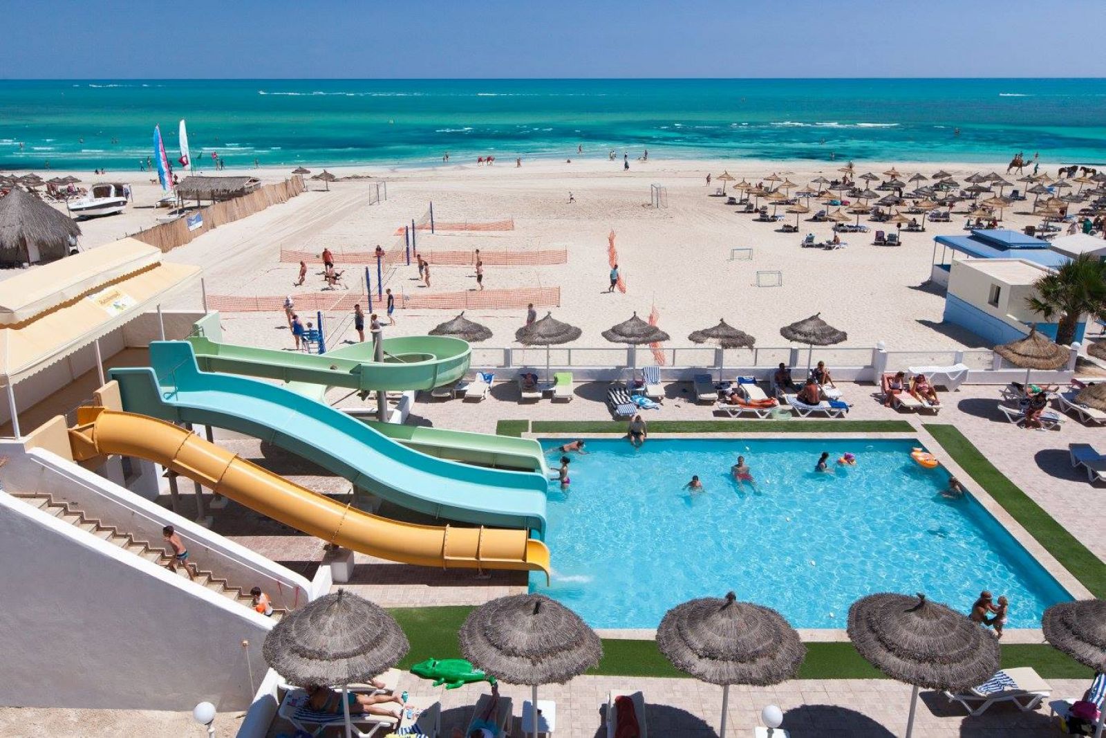 Собствен, пясъчен плаж, първа брегова линия. Чадъри, шезлонги и матарци на плажа и при басейна – безплатно. Плажни кърпи - безплатно, срещу депозит.