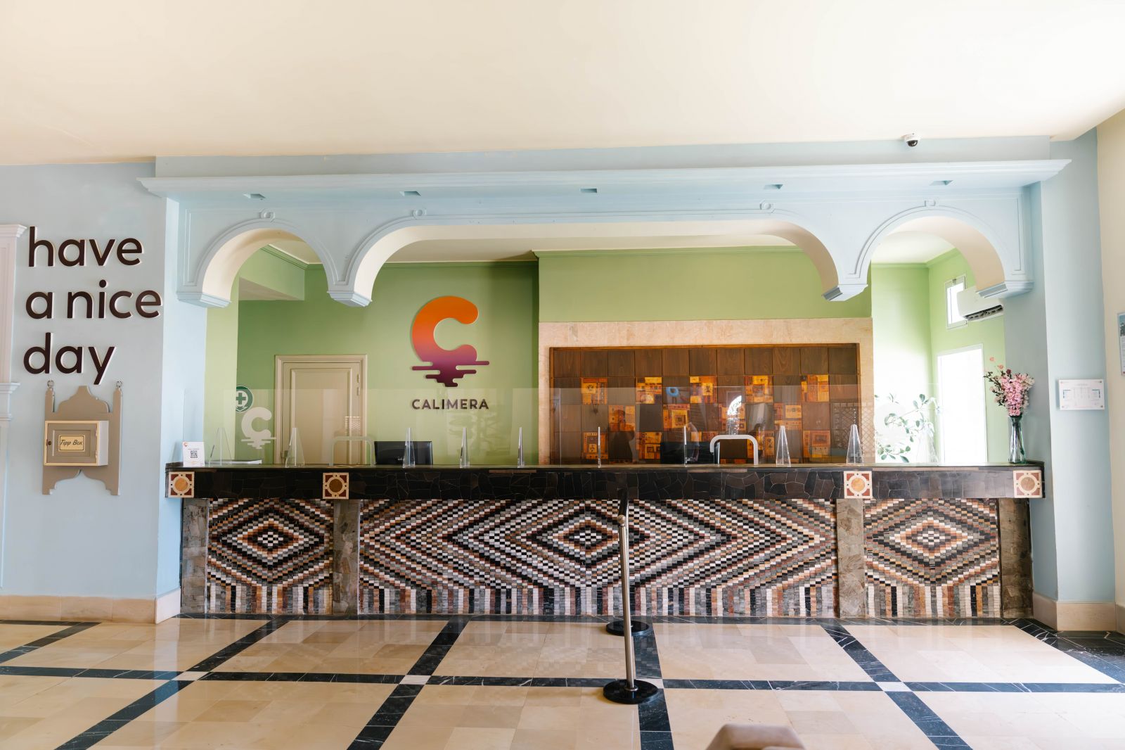 Основен ресторант, плажен ресторант и бар, а ла карт ресторант на плажа с италианска и тунизийска кугня (срещу заплащане, само през лятото едно безпалтно посещение за престой, след предварителна заявка; ресторанта работи 6 дни в седмицата при минимум 20 души), лоби бар, бар Мира, бар на релакс басейна, диско бар, мавританско кафене, 2 открити басейна, закрит басейн (отопляем от Ноември до Април), 3 водни пързалки, СПА център, магазини, анимация, денонощна рецепция, обмяна на валута.