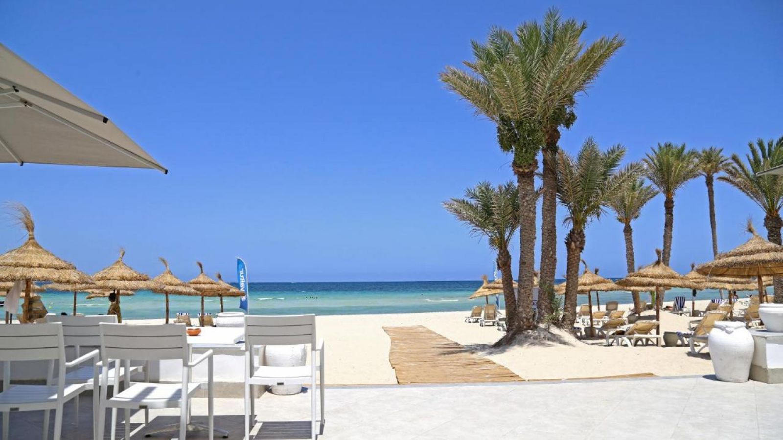 Намира се на 5 км от Мидун, на 18 км от Хумт Сук и на 27 км от летището, на брега на морето, до красивия плаж с бял пясък Сиди Марез. Последната реновация на стаите е от 2019 год.