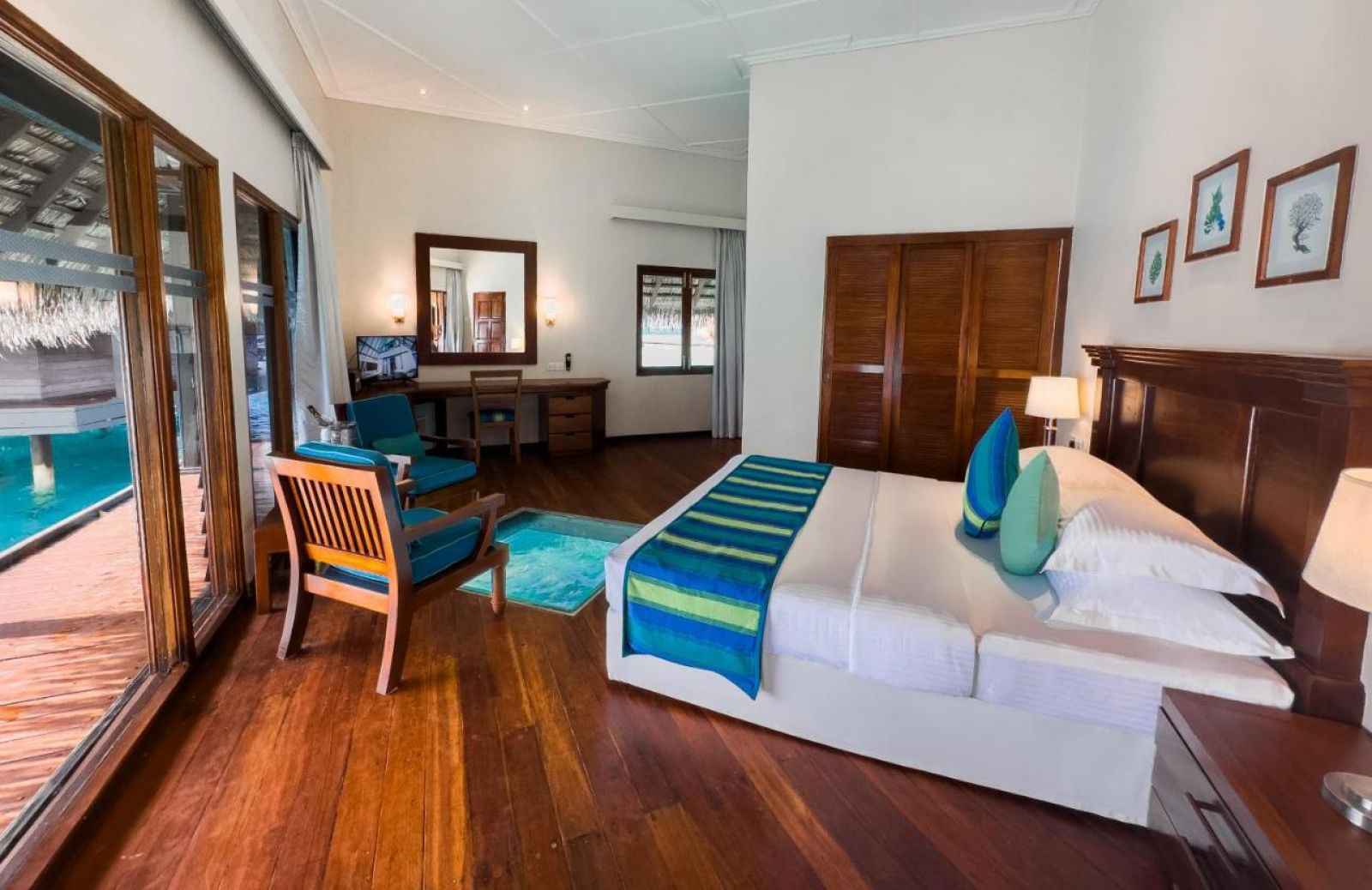 Хотелът разполага със 122 помещения за настаняване, от които 96 са стаи, а 26 са водни бунгала. Интериорът е с тропически декор, пренасяйки гостите си в магическата атмосфера на острова.
