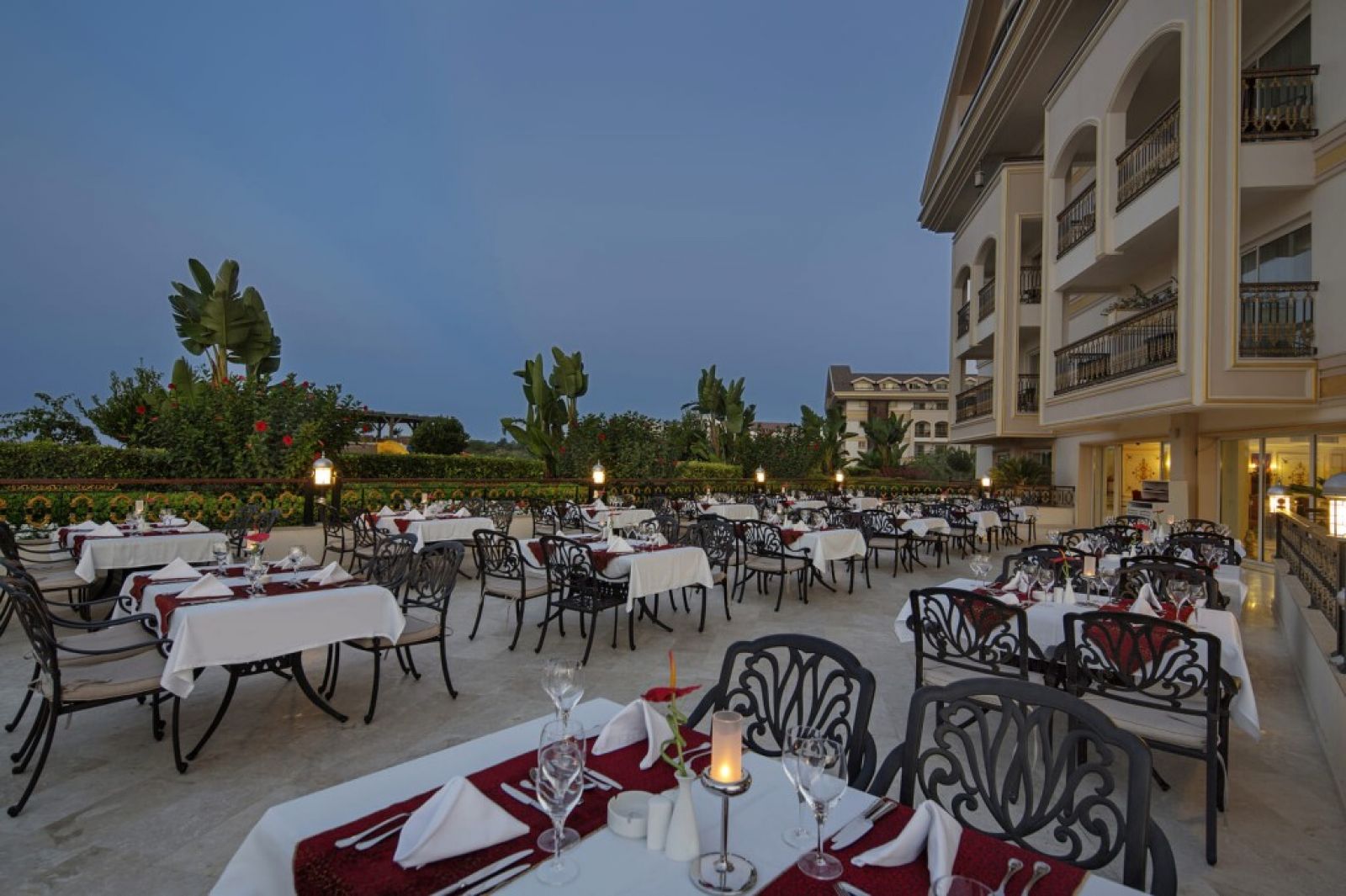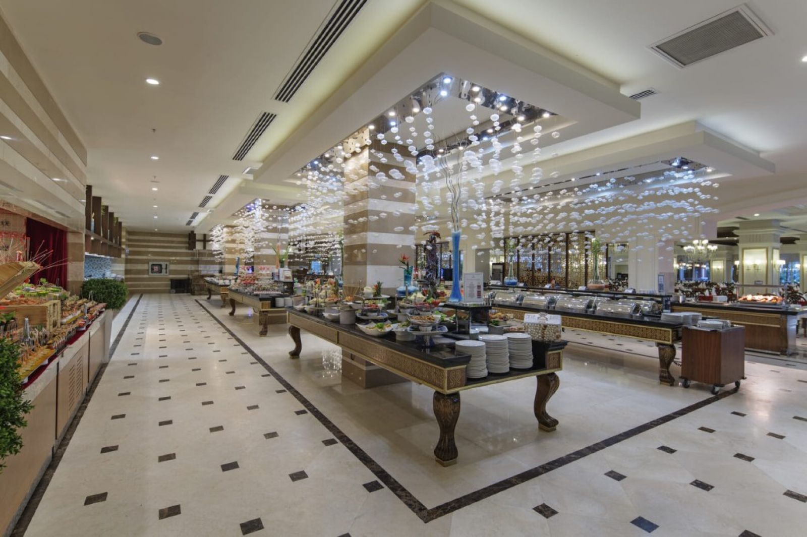 На територията на хотела: Денонощна рецепция, Основен ресторант с открита част и специална зона за хранене само за възрастни (+16), 24 часов ресторант с а ла карт меню (Excellence Restaurant) включен в концепцията, 5 а ла карт ресторанта (турски, италиански, рибен, азиатски, мексинански), сладкарница, денонощен лоби бар с включени вносни напитки, 2 бара до басейна, диско бар, основен открит басейн, басейн с водни пързалки, вътрешен басейн,