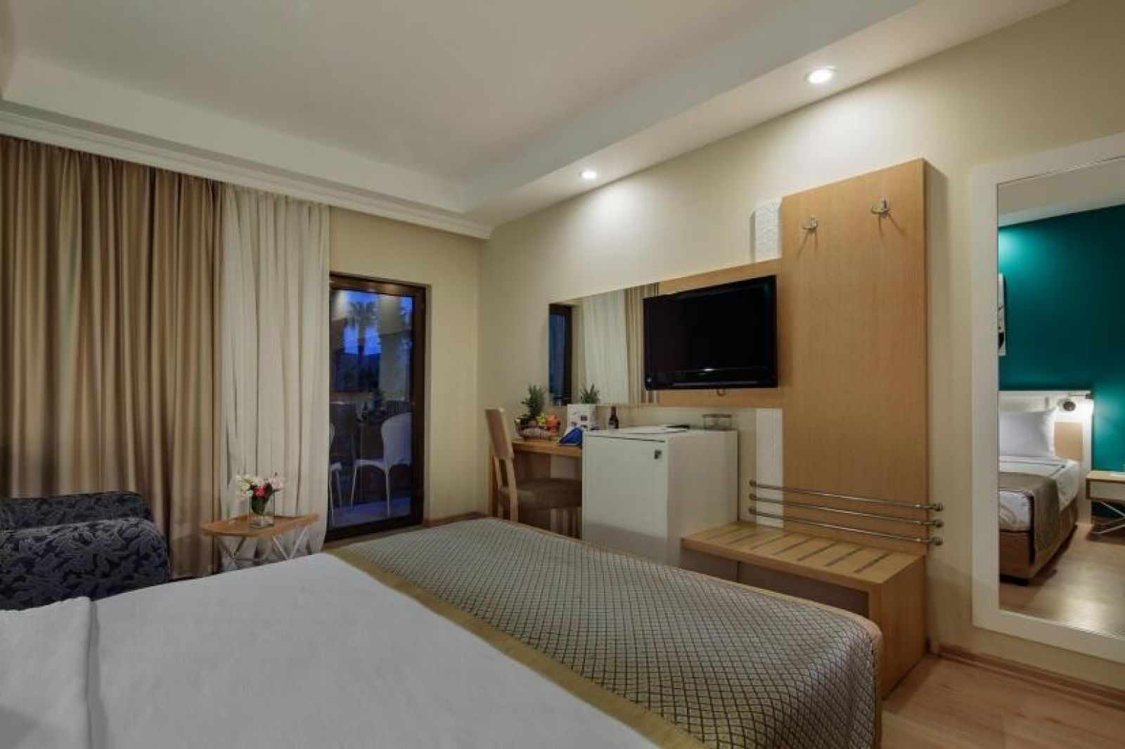 Всяка една стая е оборудвана с климатик, телевизия, телефон, баня с душ, сешоар, мини бар (безплатен), сейф, балкон или френски балкон, интернет.