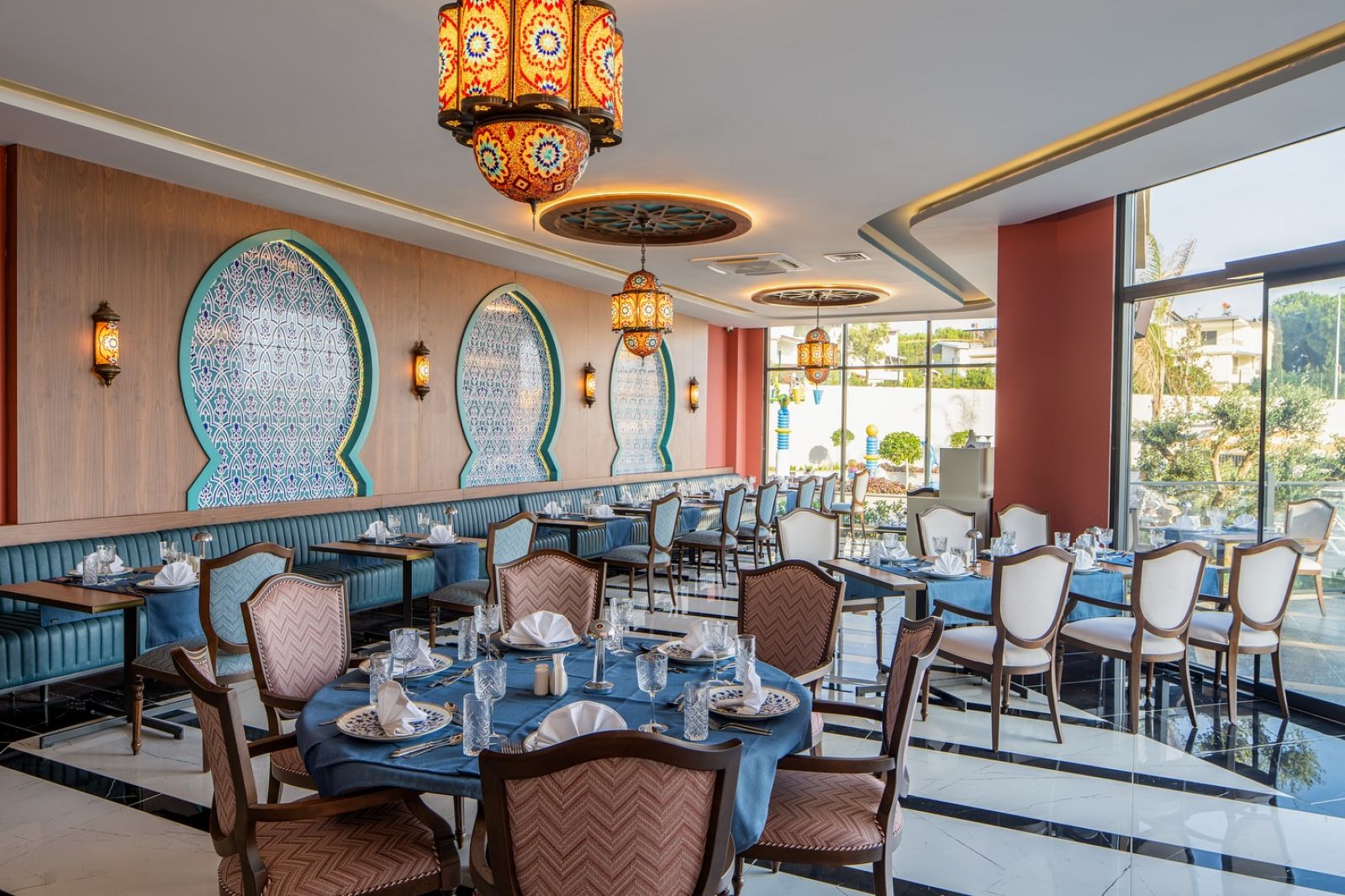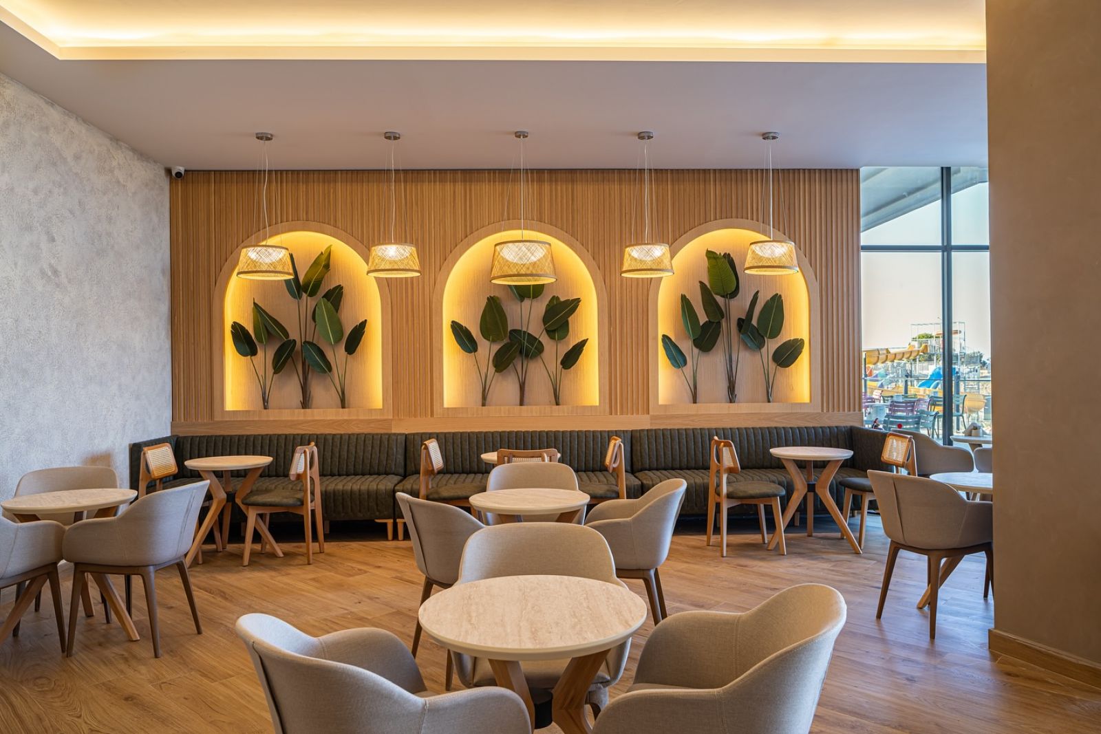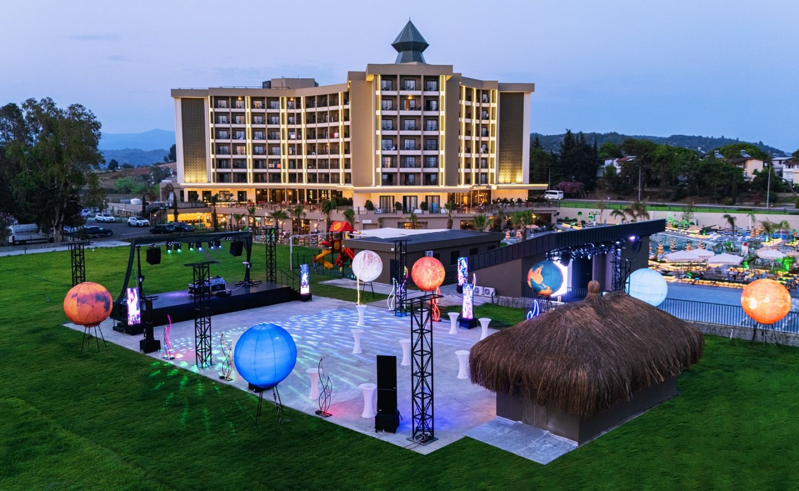 Основен ресторант, 2 а-ла-карт ресторанта (турски, италиански - срещу заплащане с предварителна резервация), сладкарница, снек бар, гьозлеме, 5 бара, открит и закрит басейн, аквапарк, СПА център, дискотека, магазини, 2 конферентни зали.