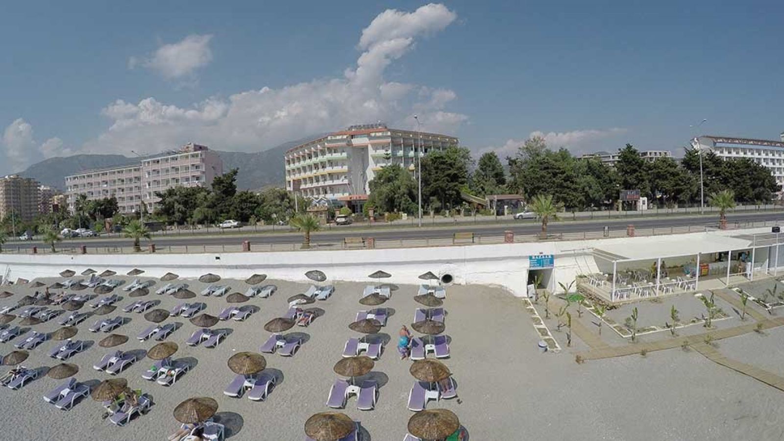 Разположение: First Class Hotel Alanya 5* се намира на 16 км от центъра на Алания, на 4 км от Махмутлар, на 140 км от международно летище Анталия, на 50 м от брега на морето през пътя. Хотелът е разположен върху компактна територия от 9,000 м2.
