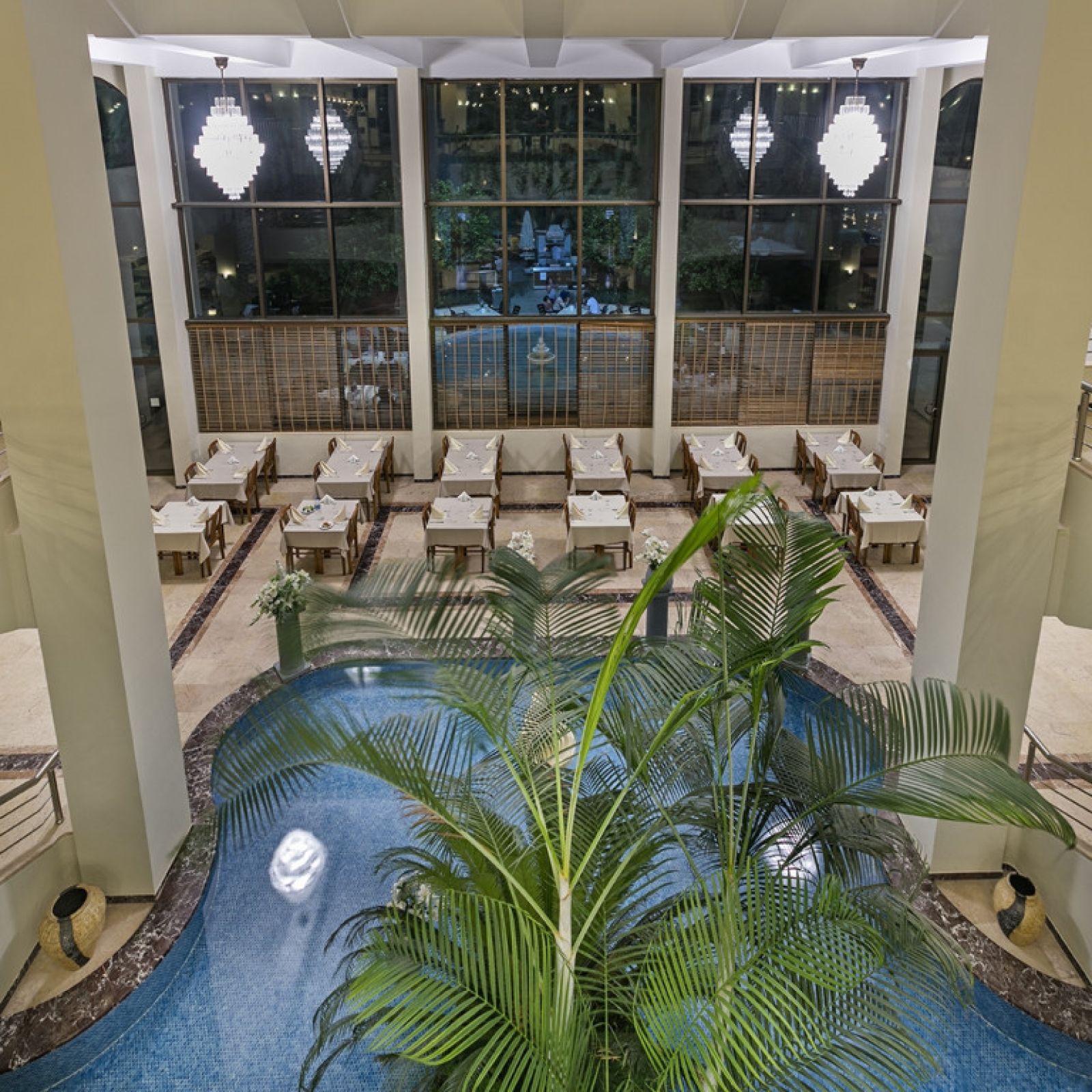 Основният ресторант сервира ястия на шведска маса. На разположение са 6 бара, сервиращи богата гама от алкохолни и безалкохолни напитки.СПА съоръженията включват турска баня, парна баня, сауна и закрит басейн.