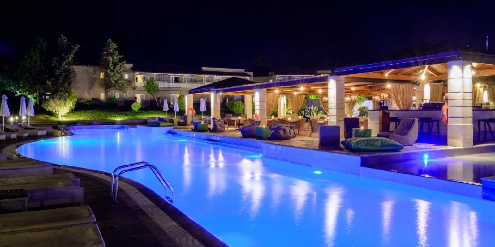 Хотелът разполага с два ресторанта и три бара - лоби бар, плажен бар и бар до басейна Mytikas е основният ресторант, в който се сервира закуска и вечеря на блок маса. La Medusa е а-ла-карт ресторант - смесица от гръцка и средиземноморска кухня. 3 открити плувни басейна, детски басейн, детски клуб, детска площадка, модерен СПА център със закрит басейн, фитнес център, тенис на маса, тенис на корт, плажен волейбол, развлекателни дейности, библиотека, ТВ зала, 2 напълно оборудвани конферентни зали, мини маркет, магазин за бижута, безплатен паркинг и коли под наем.
