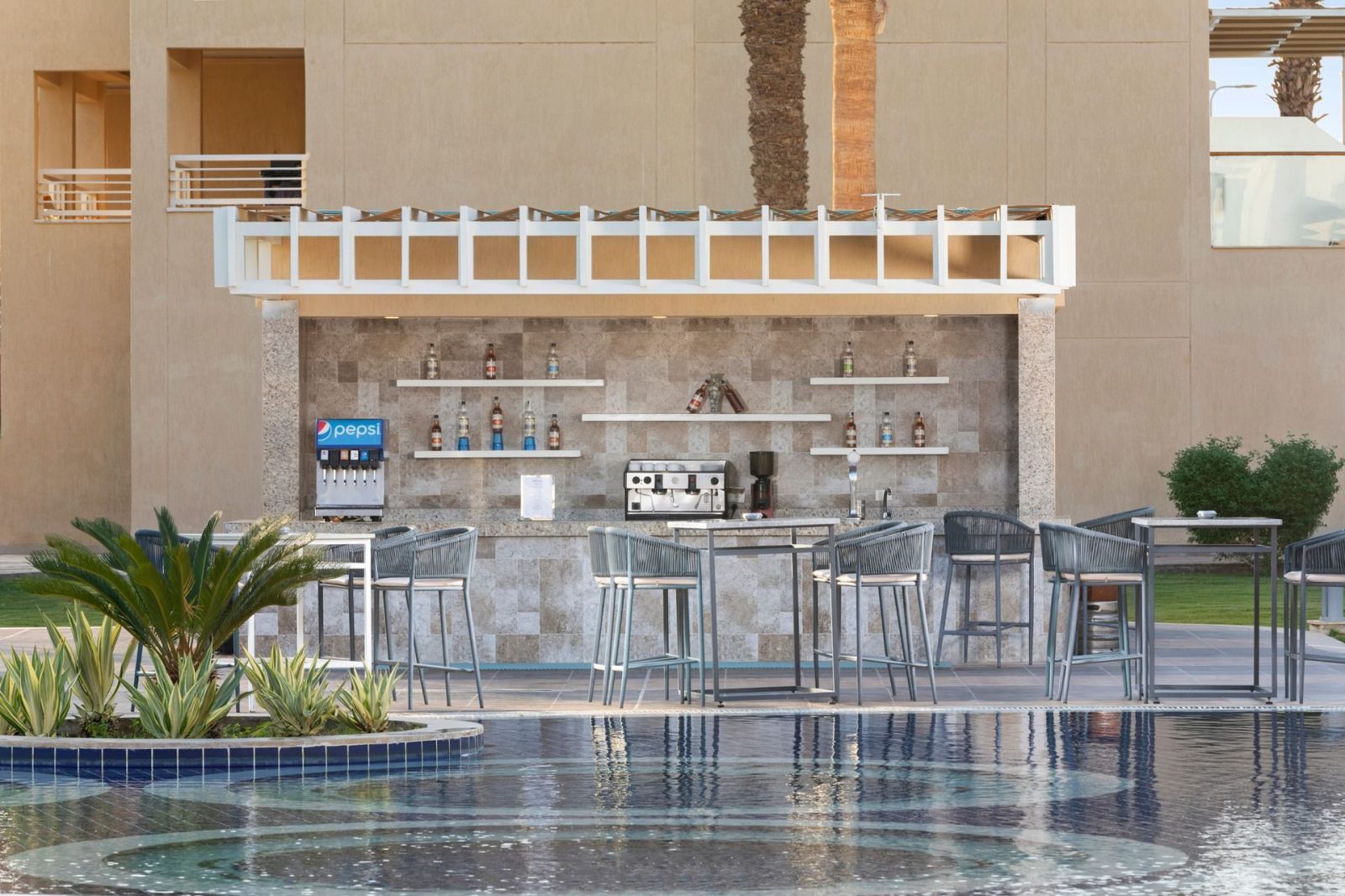 Намира се на 11 км. от летище Хургада, на 14 км. от центъра на Хургада, на брега на морето. Посторен през 1992 г., последно реновиран през 2011 г.