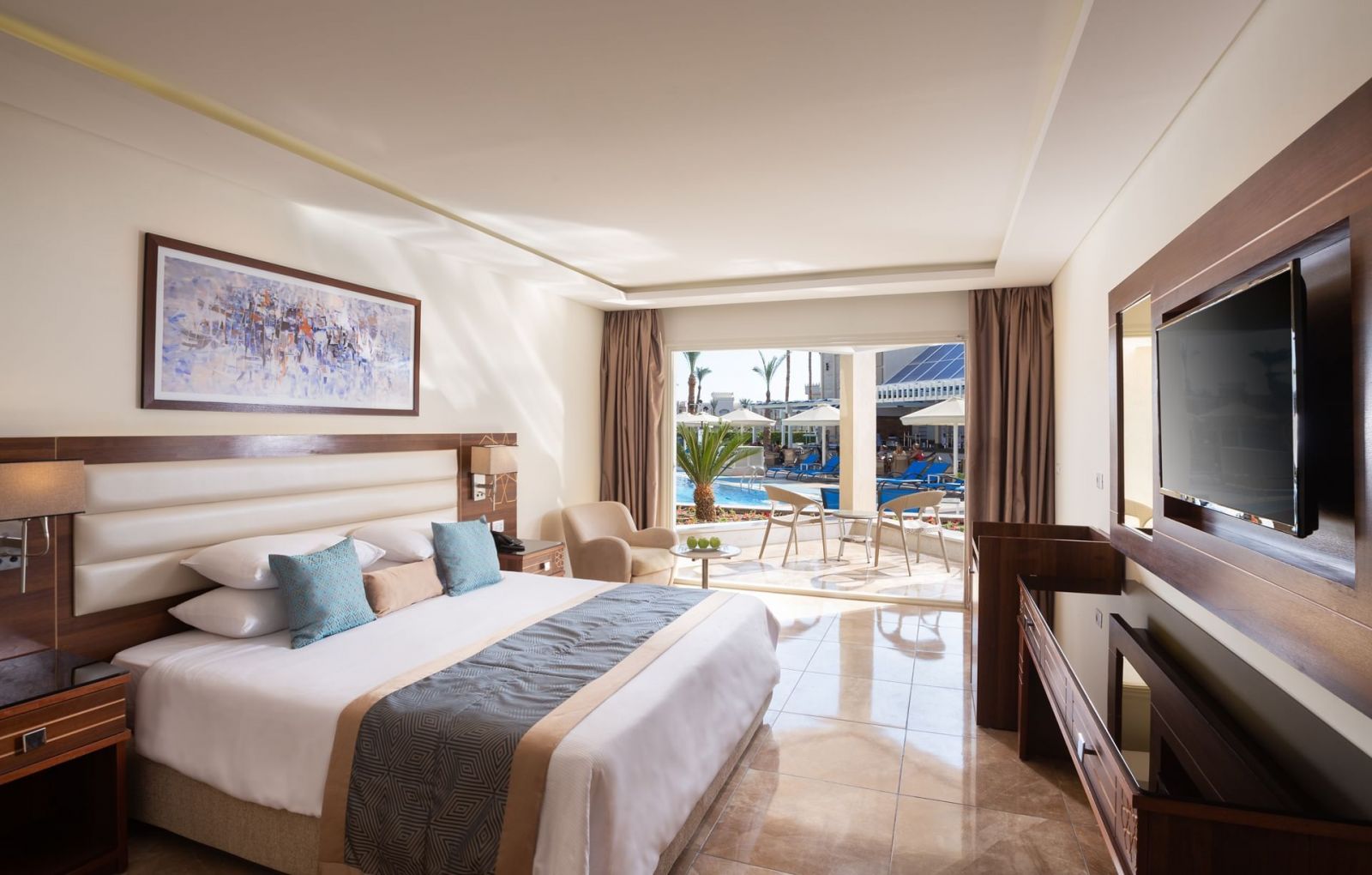 Хотелът разполага с общо 678 стаи, разположени в комплекс от двуетажни вили, основна четириетажна сграда и триетажен корпус. от които 374 Standart rooms (с изглед към градина, басейн или морето – 24 м2), 220 Standard bungalow rooms (с изглед към градина или море – 28 м2), 62 Family rooms (с изглед към градина, басейн или морето) и 22 Suites (с изглед към морето). Всички стаи са оборудвани с климатик, телевизор, телефон, баня с душ, сешоар, минибар (зарежда се всеки ден с минерална вода - безплатно), сет за чай/кафе, сейф, Wi-fi, балкон. Почистване на стаите и смяна на кърпите - всеки ден, смяна на спално бельо – 3 пъти в седмицата.
