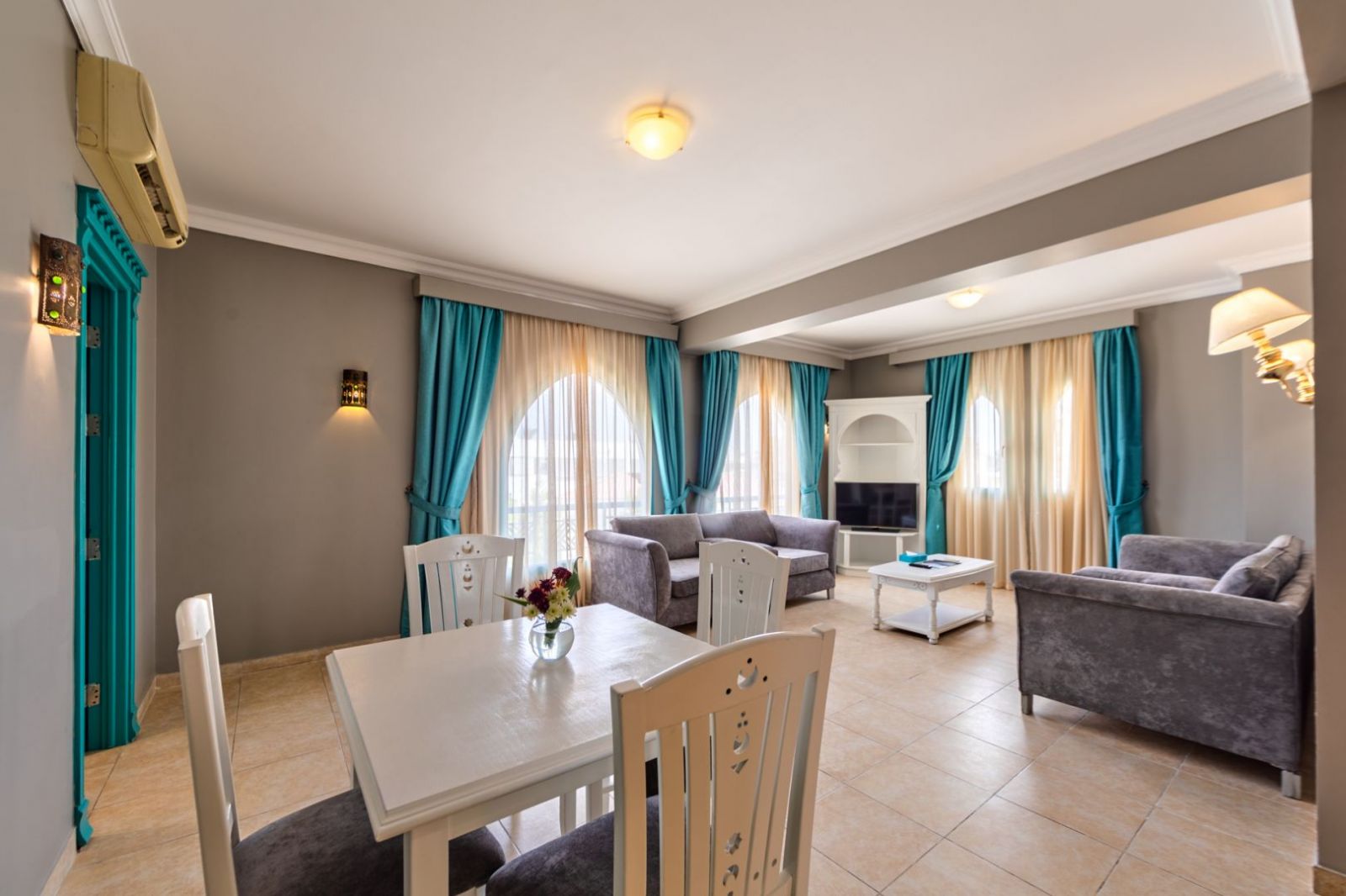 Всички стаи са оборудвани с климатик, телевизор, телефон, баня с душ/вана, сешоар, сет за чай/кафе, минибар (платен), сейф (безплатен), Wi-Fi (безплатен), балкон/тераса. Почистване на стаите и смяна на кърпите – всеки ден, смяна на спалното бельо – 2 пъти в седмицата.