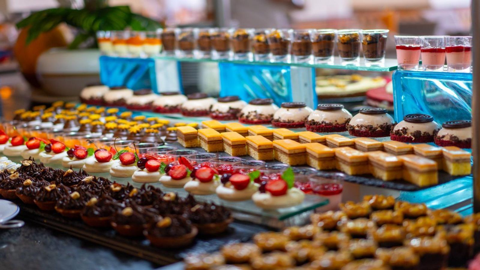 Основен ресторант OBlu, 4 тематични а ла карт ресторанта, всеки от които може да бъде посетен безплатно веднъж по време на престой след предварителна резервация (в хотел Medina Belisaire & Thalasso със средиземноморска кухня, в хотел Medina Diar Lemdina с мароканска кухня, в хотел Medina Solaria & Thalasso с италианска кухня, в ресторант Shaherezade” в хотел Medina Diar Lemdina с тематична вечеря 1001 нощи), снек ресторант, лоби бар, бар басейн, плажен бар, мавританско кафене, външен басейн, закрит басейн, денонощна рецепция, 5 конферентни зали, Таласо център, обмяна на валута, анимация.