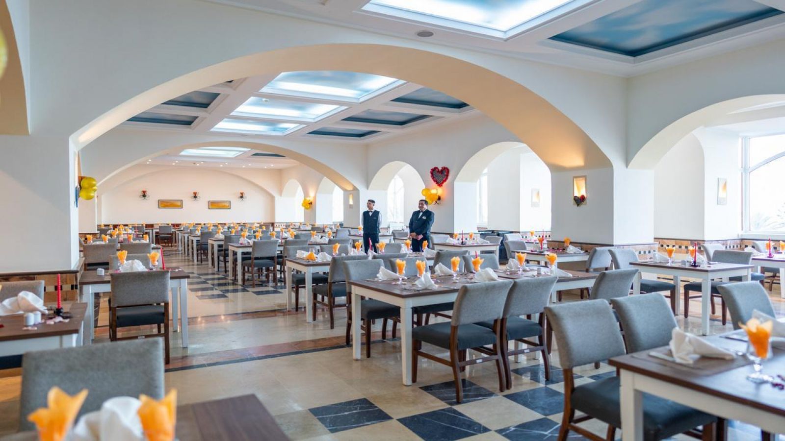 В периода от пристигането в хотела до настаняването, туристите могат да се възползват от всички услуги, включени в концепцията на хотела.