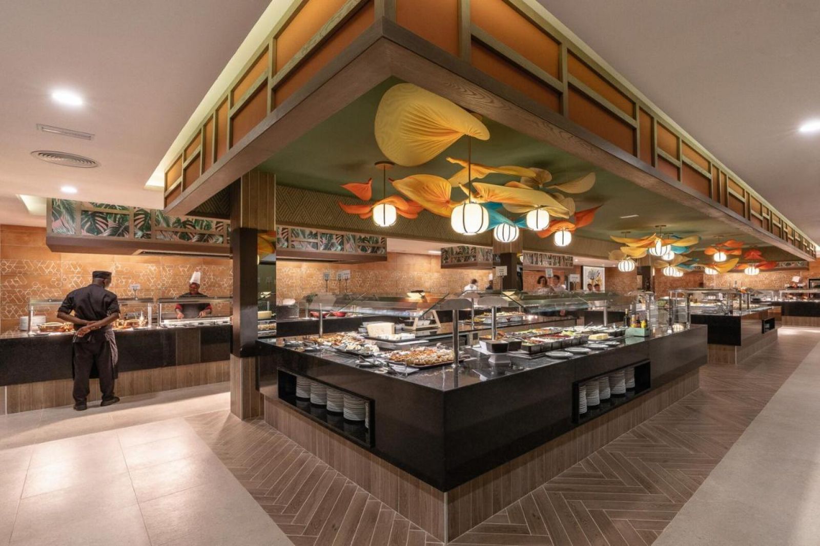 Основен ресторант с шоу кукинг, 3 тематични ресторанта - фюжън, стек хаус, рибен с предварителна резервация, 4 открити и 1 закрит басейн, 5 бара - 2 при басейна, 1 на плажа, 1 лаундж бар, СПА център, салон за красота, магазин за сувенири, 24-часова рецепция, паркинг.
