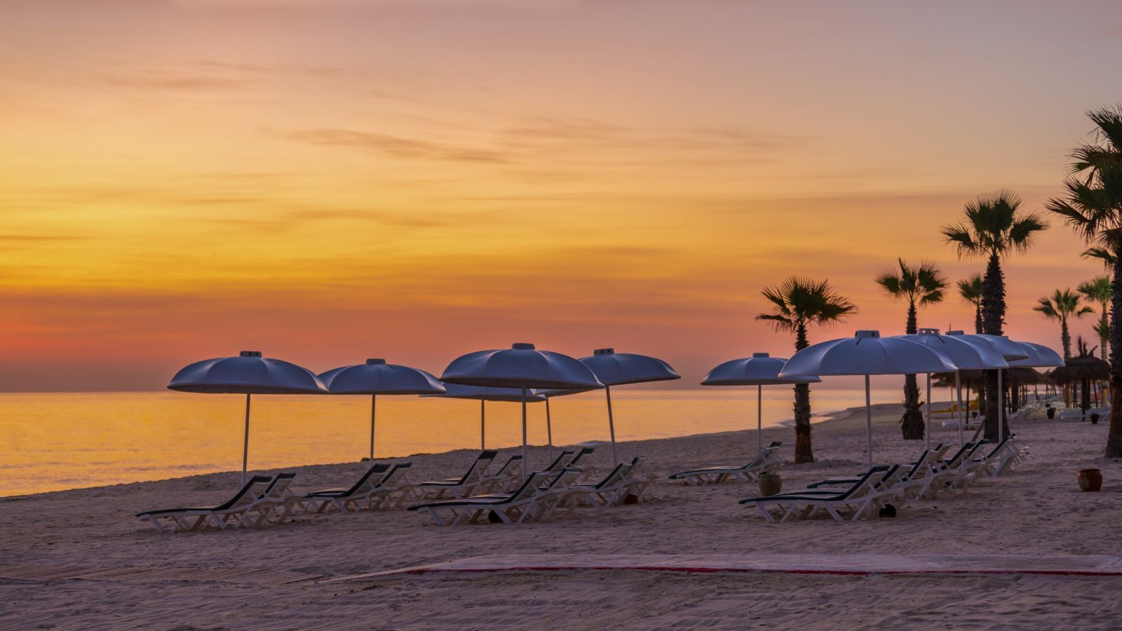 Собствен, пясъчен. Чадъри, шезлонги на плажа и басейна - безплатно, матраци - срещу заплащане. Плажни кърпи - безплатно, срещу депозит.