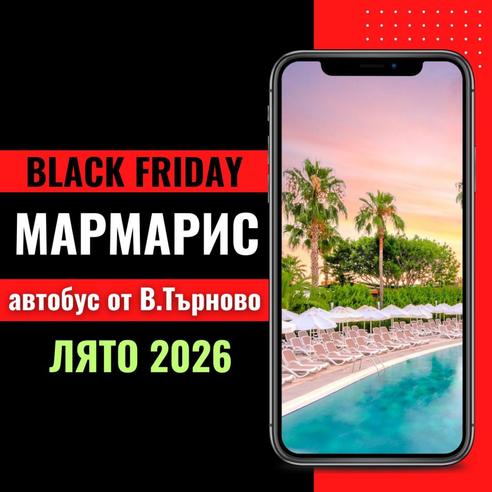Черен петък Мармарис Лято 2026 с автобус от В.Търново - 7 нощувки