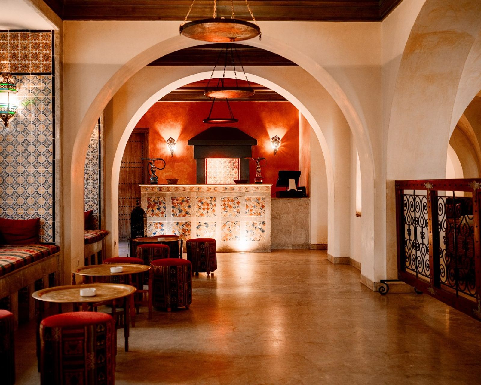 Основен ресторант El Kastil, а ла карт ресторант El Mahboubine (платен, едно безплатно посещение след предварителна резервация), лоби бар El May, бар басейн, плажен бар, мавританско кафене, открит басейн, закрит басейн (отопляем през зимата), денонощна рецепция, конферентна зала, СПА център, стая за багаж, сувенирен магазин, обмяна на валута.