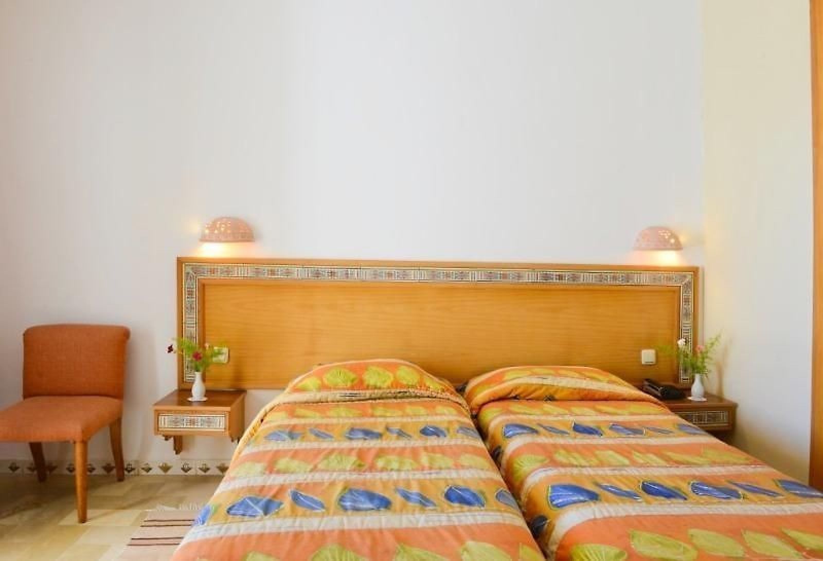 Разположение: Хотела се намира на 5 км от центъра на Мидун, на 2 км от Голф клуб Джерба, на 1 км от Гранд Боулинг Джерба и на 31 км от летището. Намира се на 250 метра от плажа. Хотелът е с приветлив персонал и интернет навсякъде. Климатиците се включват след 15 юни, но може и по-рано, ако хотелът е пълен. Напълно реновиран през 2006 г.