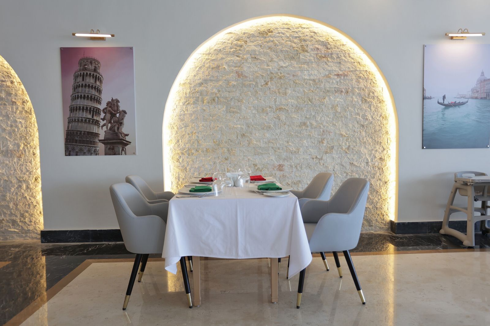 2 основни ресторанта с различна тематика, 5 а - ла - карт ресторанта (рибен, италиански, ориенталски, азиатски, китайски-с предварителна резервация, съгласно концепцията на хотела), 8 бара, чаена къща, 1 голям открит басейн (5 400 м2) и 1 закрит басейн (отопляем през зимния сезон), аквапарк със 17 водни пързалки, СПА център, дискотека, конферентна зала, магазини.