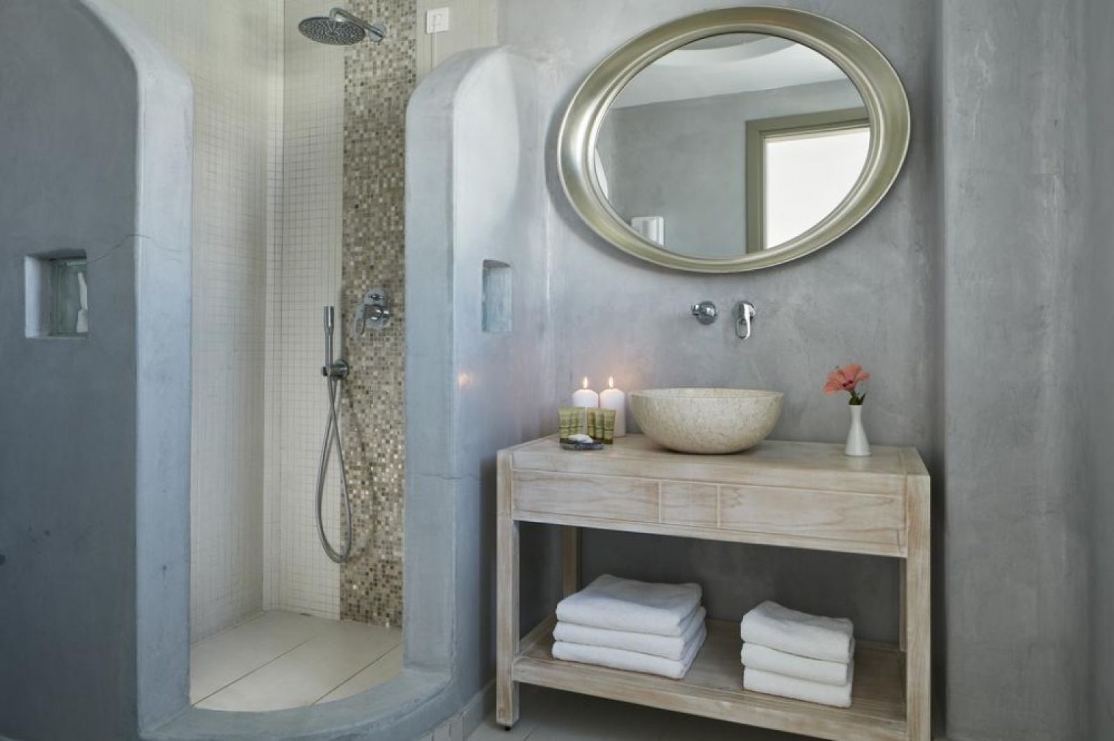 Хотелът се намира на 9 км от столицата Фира, в селището Камари, на 50 м. от брега на морето. Построен през 2001 - 2002 г. в традиционна цикладска архитектура и изцяло реновиран през 2014 г.