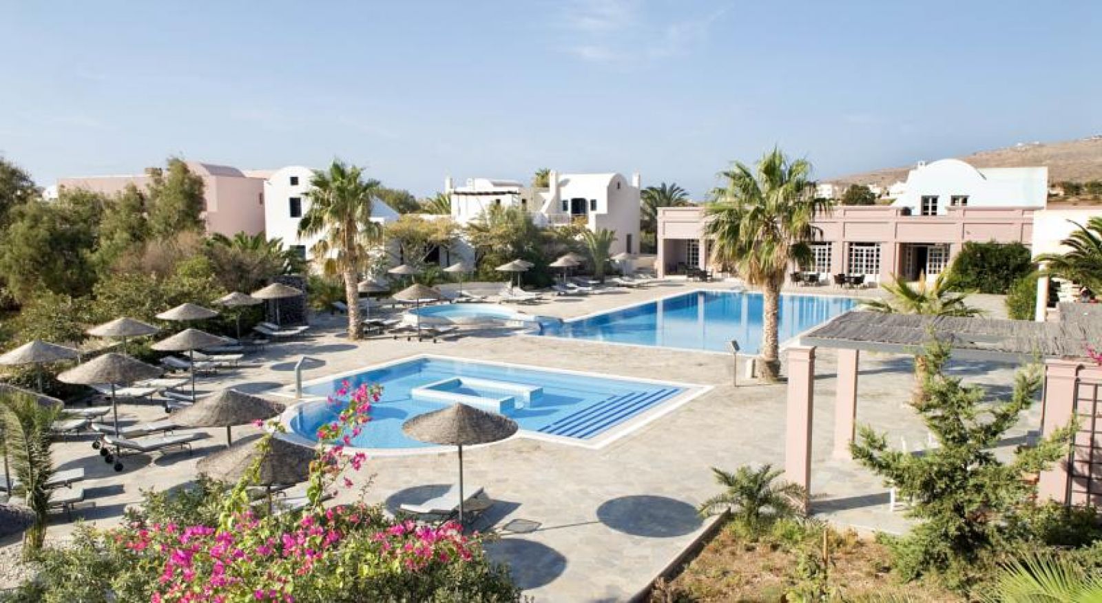 В курортно селище Периволос, на 12 км от град Фира, на 15 км от летището и на 12 км от пристанището.Този елегантен семеен хотелски комплекс е кръстен на деветте музи от гръцката митология. Той предлага развлечения и релаксиране, в непосредствена близост до невероятния плаж Периса.Хотелски комплекс Santorini 9 Muses Resort съчетава традиционна за Санторини архитектура с гръцка история и модерни удобства. Всяка от сградите на хотелския комплекс е кръстена на една от деветте музи от гръцката митология.