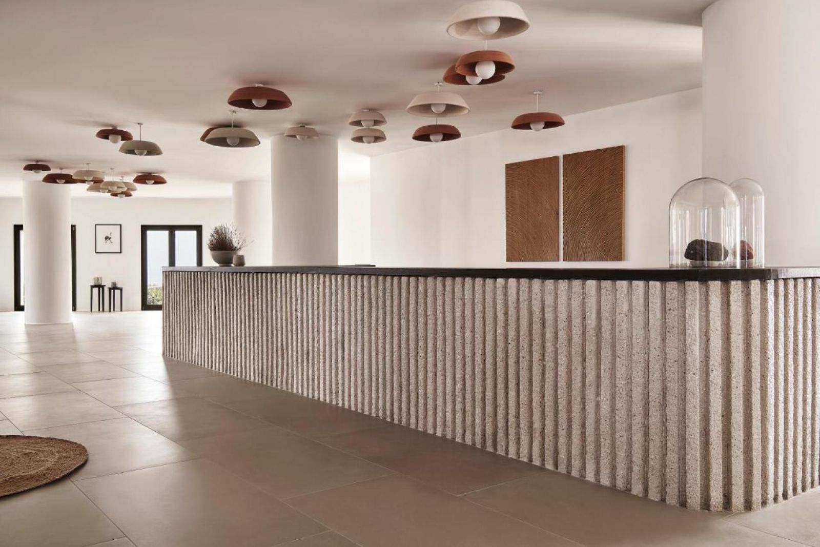 Orama Hotel & Spa предлага 100 супериорни стаи и апартаменти със стил на декорация, който съчетава линиите на санторинската архитектура с минималистични детайли. Всички сгради са на 2 етажа.