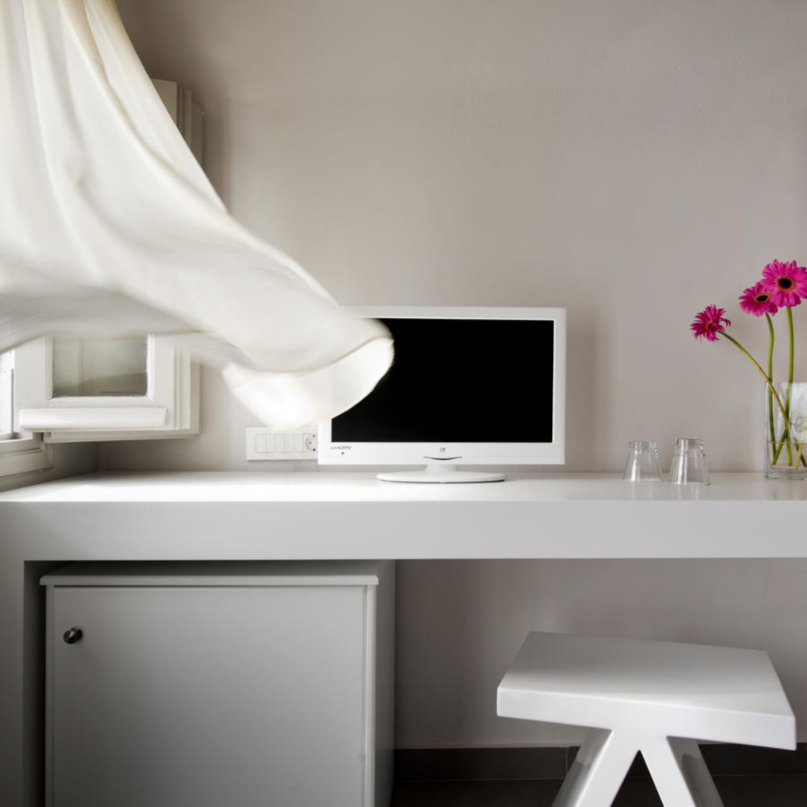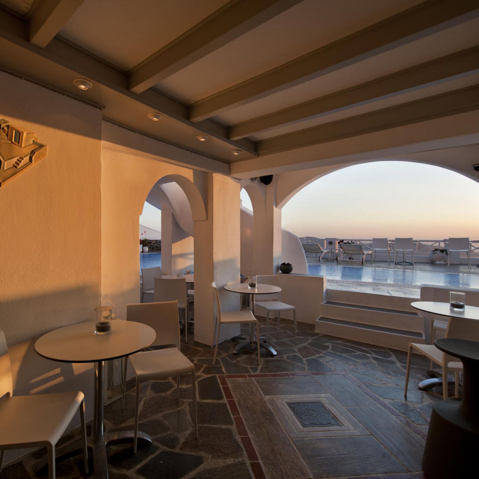 Гостите могат да се възползват от открит плувен басейн и тераса, която предлага красива гледка към калдерата и залеза на слънцето. На място има и снек-бар.
