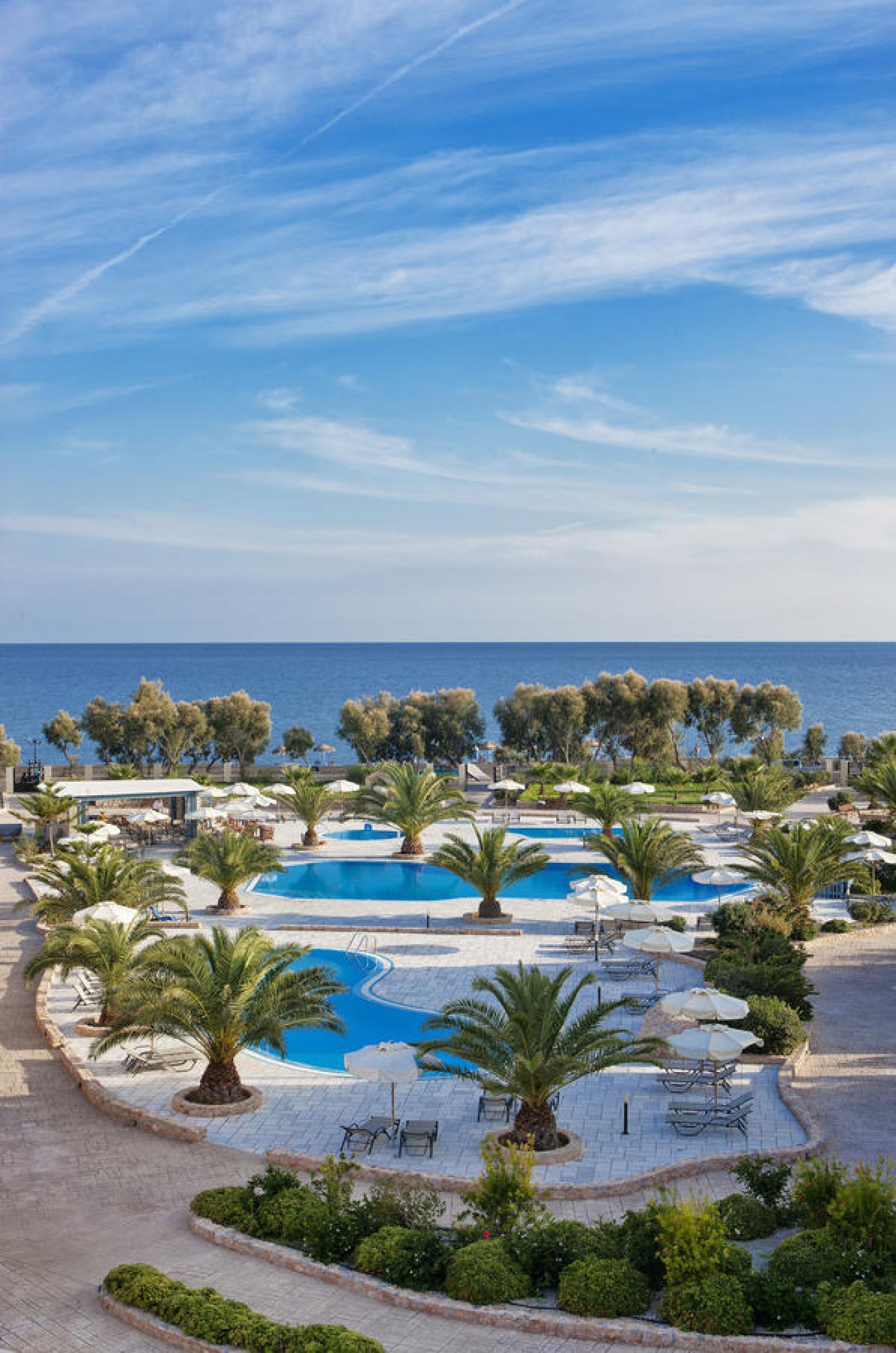 Ресторант, бар до басейна, 2 големи басейна с прясна вода, джакузи, интернет - Wi-Fi (срещу заплащане), конферентни зали, секретарски услуги, техническо оборудване, лекар, масаж, пощенски услуги, сауна, сейф в стаята (без доплащане), телевизионна зала, фитнес зала, химическо чистене / пералня, услуги пране и гладене. Плаж:плажни кърпи безплатно, пясъчен плаж до хотела, пясъчен плаж Периволос. Чадъри - безплатно,Шезлонги - безплатно. За деца: детегледачка - по заявка, детски басейн - с прясна вода