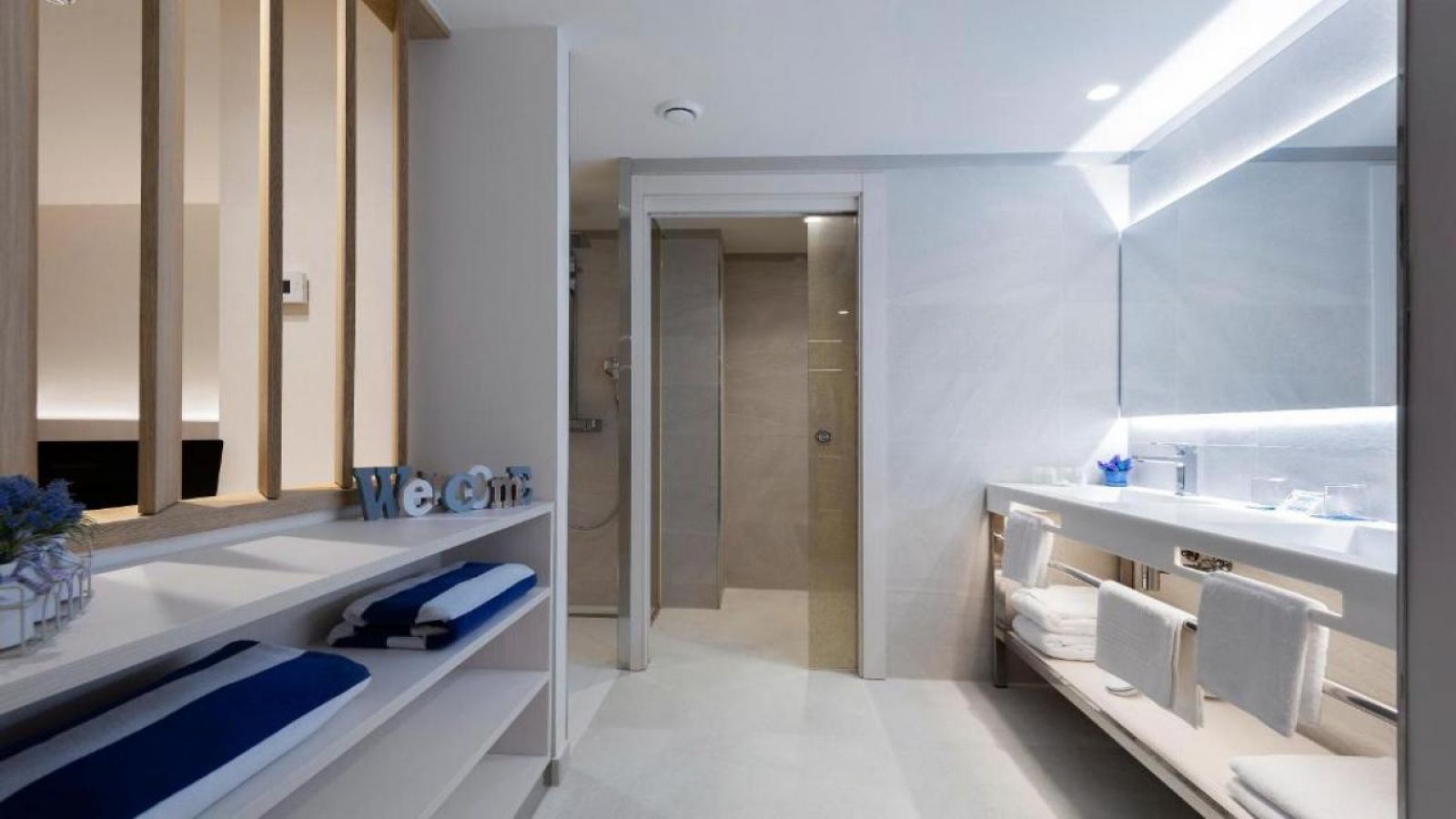 открити басейни за възрастни и деца, просторна слънчева тераса с шезлонги и чадъри, както и