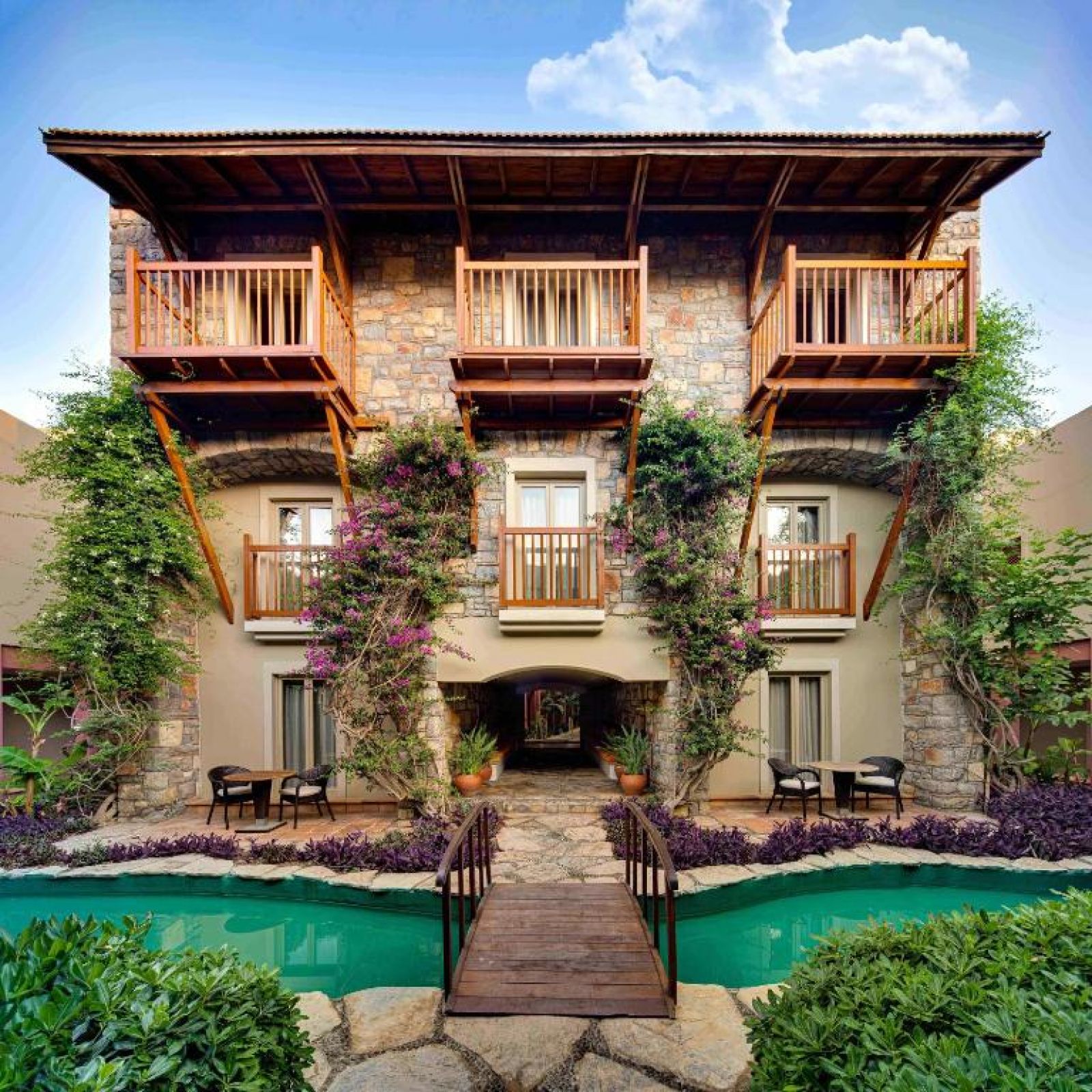 Хотелът разполага с общо 60 стаи, разположени в 3-етажни сгради. Стаи