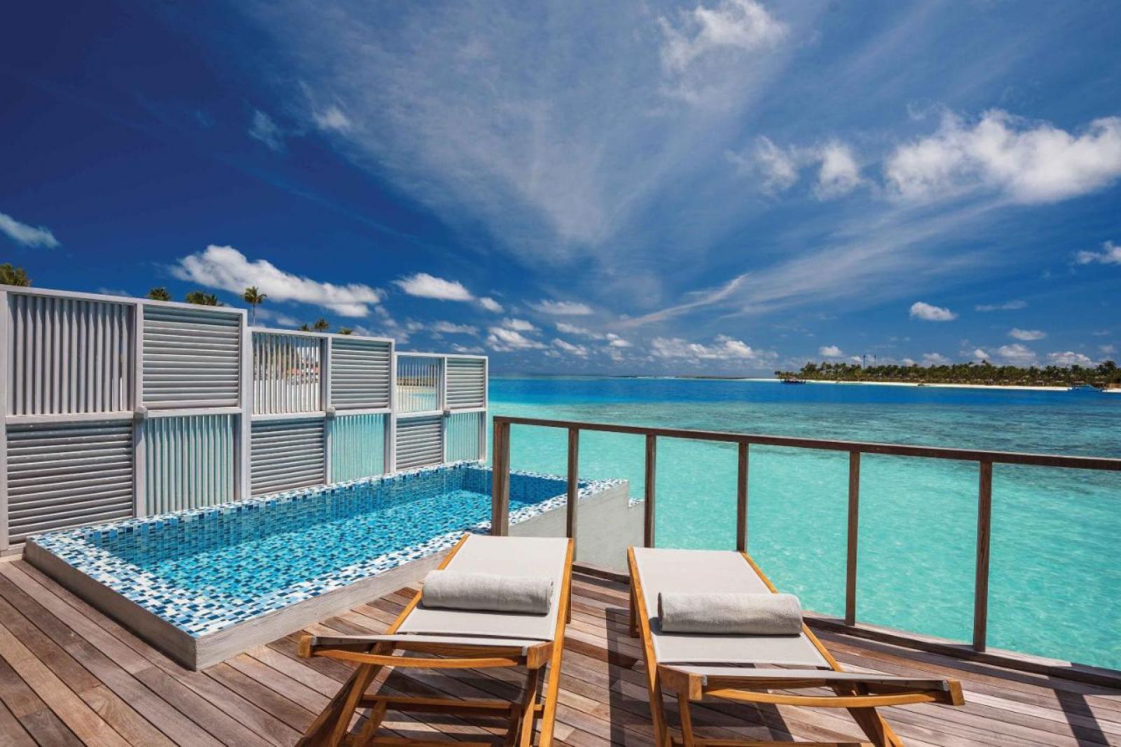 - 26 Water Villa with Pool (~88 кв.м) - водни вили с басейн (8 кв.м). Състоят се от спалня с голямо легло и кът за сядане, съблекалня, баня с отделна вана и душ, тераса с басейн, шезлонги и достъп до водата. Максималното настаняване е 3-ма възрастни или 2-ма възрастни и 1 дете.