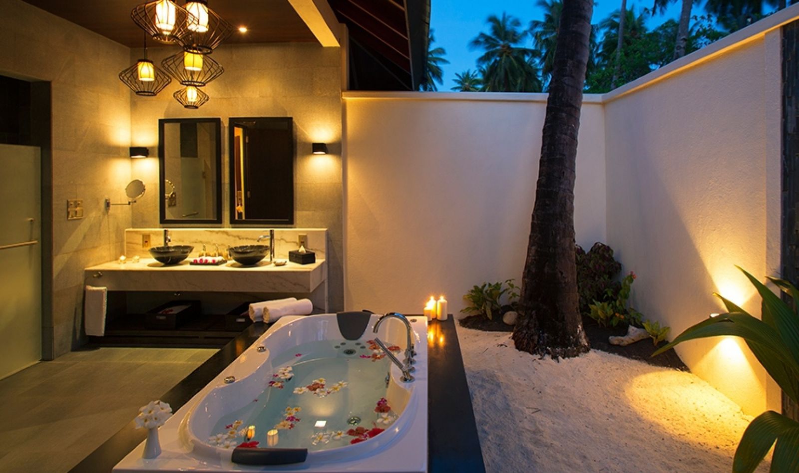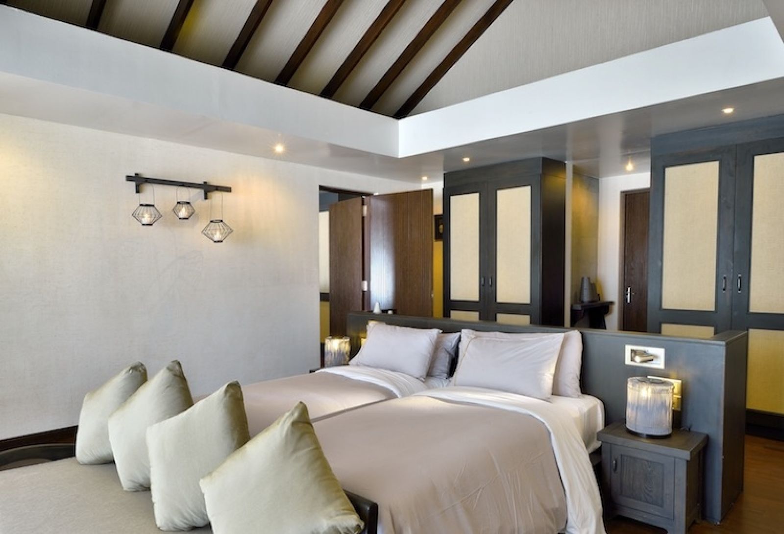 - 18 Two Bedroom Sunset Family Beach Villa (200 кв.м) - 2 комбинирани Вили на плажа с отделни входове. Състои се от 2 спални с легла с кралски размери и зони за отдих, 2 открити бани с горещи вани и душове, 2 веранда с шезлонги, кът за хранене и изход на плажа. Максимално настаняване - 4 възрастни и 2 деца или 2 възрастни и 4 деца.