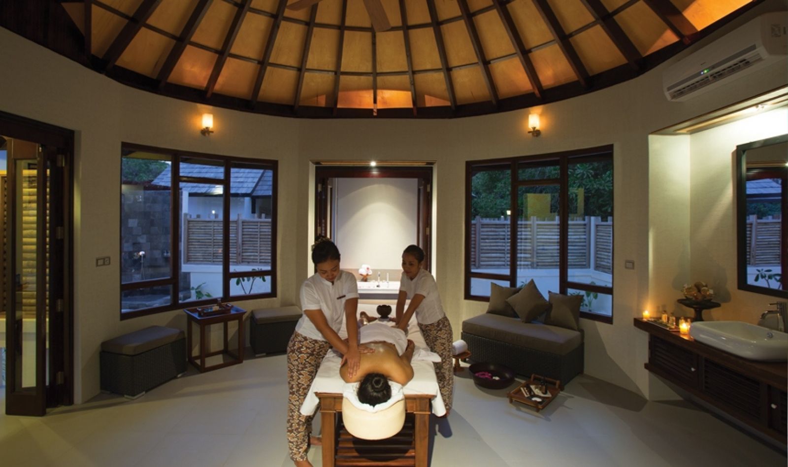 - Акири СПА от Мандара 6 вили за спа процедури, фризьорство, козметичен салон, хидромасажна вана, хидромасажна вана, сауна, спа бутик, стая за почивка.
