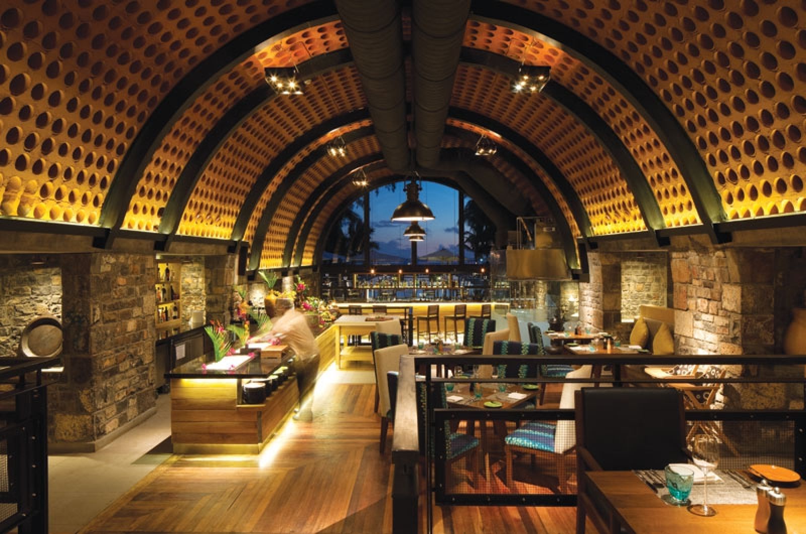 Всяка сутрин се сервира закуска на шведска маса. Ресторантите на място предлагат маврицийска и международна кухня. Коктейли, леки закуски и освежаващи напитки можете да поръчате в бар Bleu. В избрани дни тук се провеждат също вечерни развлекателни програми.
